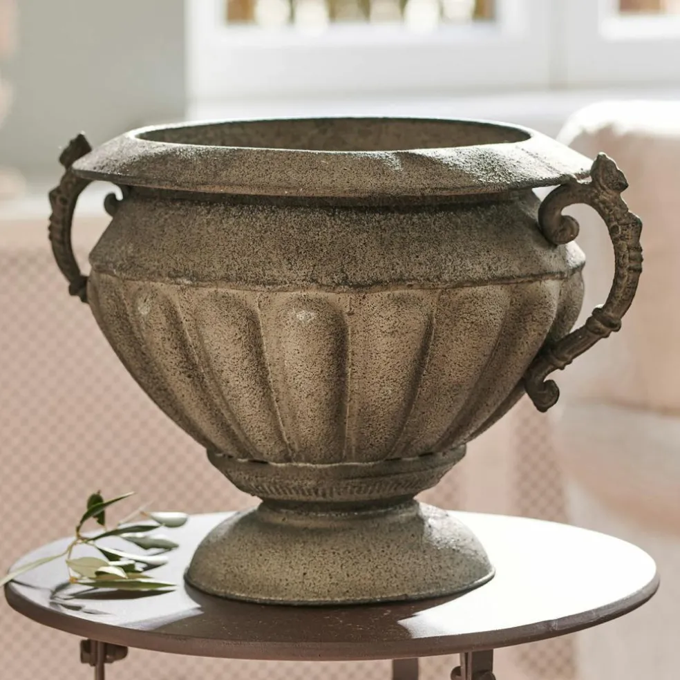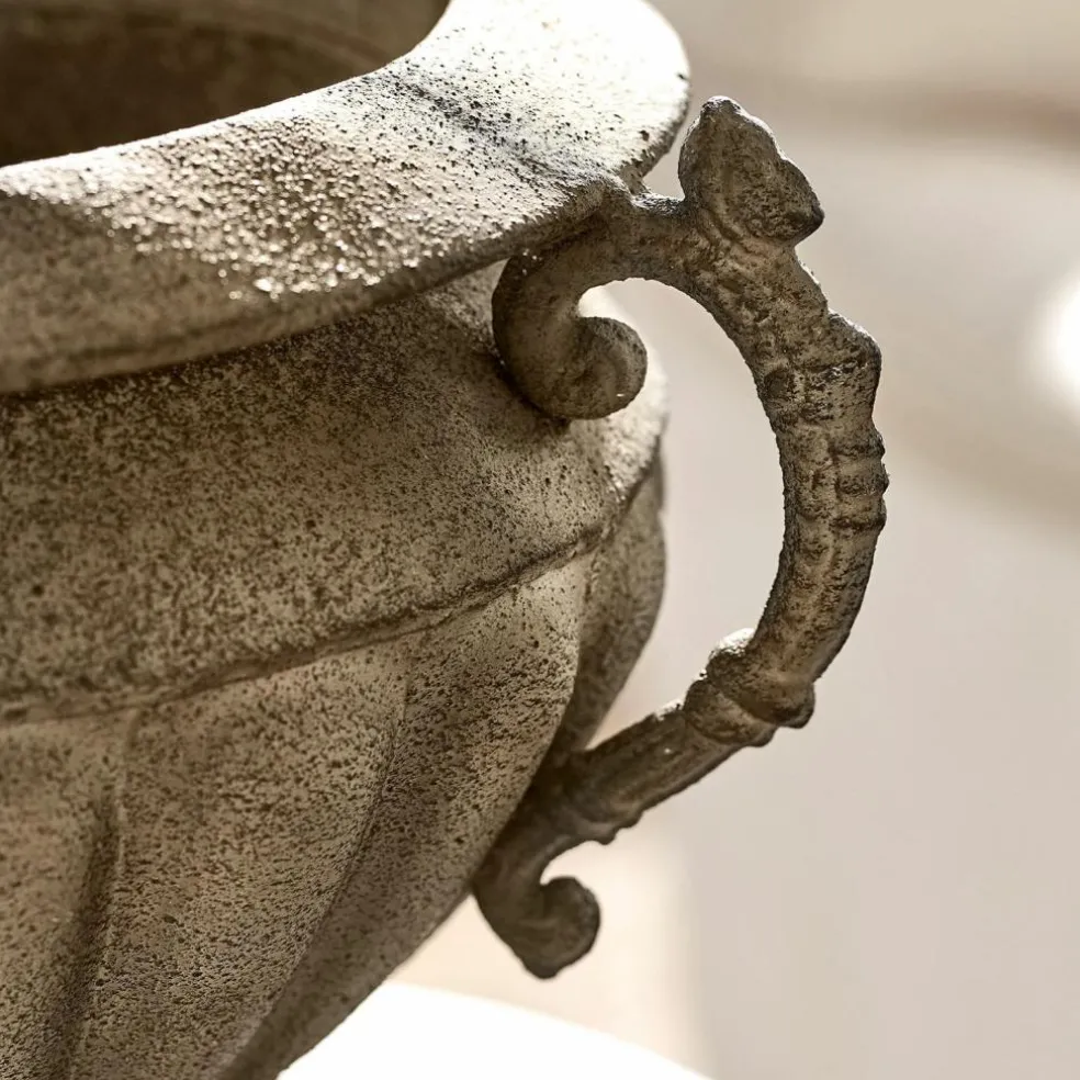 Ein wahres Schmuckstück mit antikem Charme. Die elegante Amphore weist kunstvolle Details wie fein geschmückte Griffe auf, die sie zu einem echten Lieblingsstück machen. Nicht nur zum Shabby-Chic setzt sie einen absolut gekonnten Deko-Akzent. Das edle Accessoire ist bestens mit für Trockenblumen und anderer Deko geeignet. Auch ganz pur als Dekoration ist das wertvolle, langlebige Design eine sehr gute Wahl.
