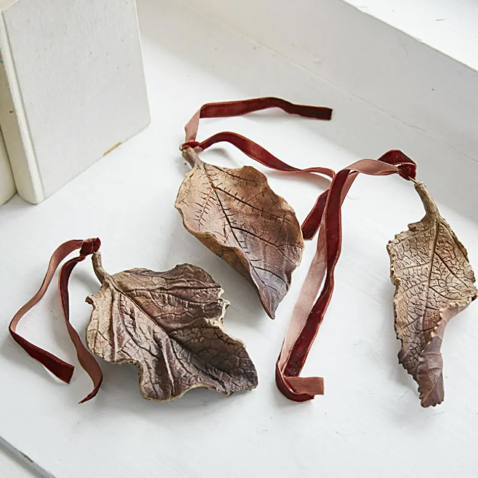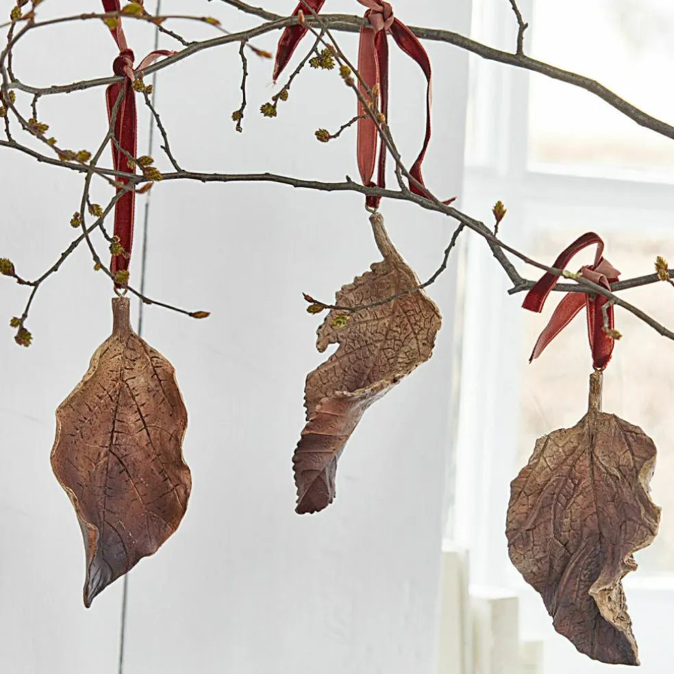 Diese wunderhübschen Deko-Herbstblätter sehen ganz echt aus. Sie sind sehr fein gestaltet und bestehen aus handbemaltem Polyresin. Ihr sehr authentischer Natur-Look schmeichelt etwa einem Ambiente im Landhaus-Stil und zaubert die Natur in Ihr Heim. Ein hübsches Samtband zum Aufhängen ist jeweils schon inklusive. Sie erhalten drei Desings im harmonischen Set, die an einer Hakenleiste, an Wandhaken oder auch an einem selbst gebastelten Gestell aus Ästen aufgehängt werden könnten. Auch Zweige in einer Vase lassen sich mit ihnen sehr schön verzieren.