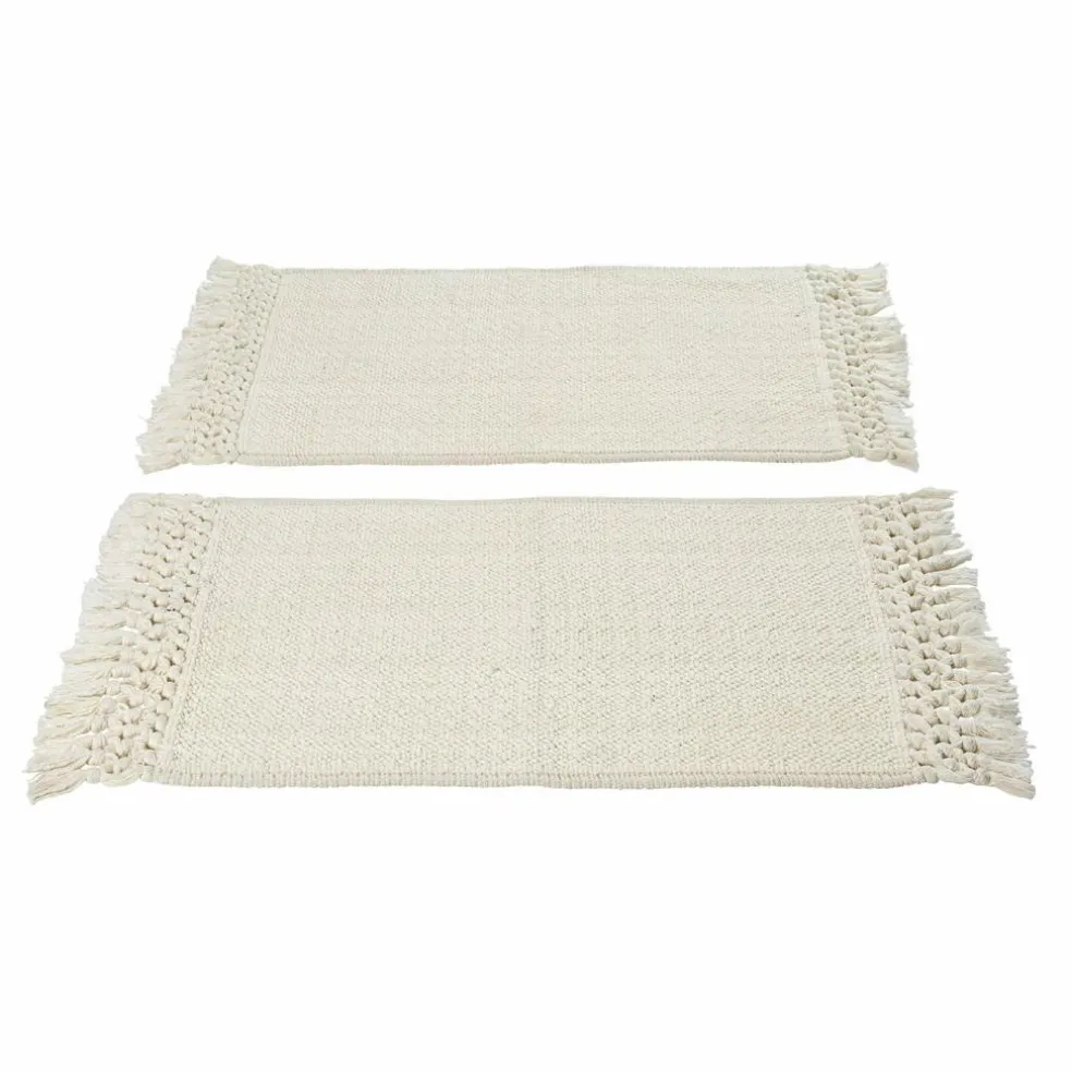 Ein Hauch von Textilpoesie für Ihre Füße: Dieses Badematten-Set aus reiner Baumwolle bringt nicht nur Komfort, sondern auch Charakter in Ihr Badezimmer. Die fein gewebte Struktur sorgt für eine sanfte Haptik, während das dezente Rautenmuster eine charmante Tiefe erzeugt. An beiden Enden betonen aufwendig geknüpfte Fransen in Makramee-Optik die handwerkliche Wirkung und geben dem Design eine verspielte Note. Das helle Naturweiß harmoniert wunderbar mit Holz, Leinen und anderen Naturmaterialien – perfekt für einen warmen, ruhigen Stil mit einem Hauch von Boho.
