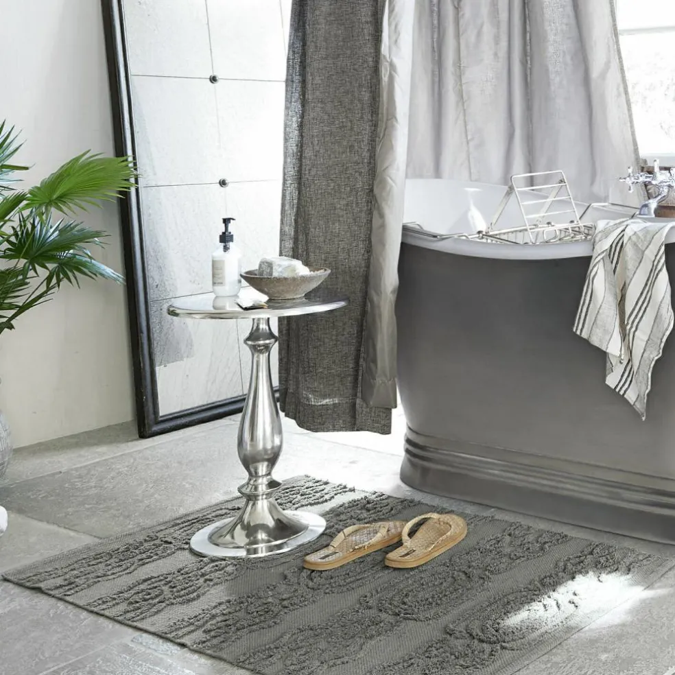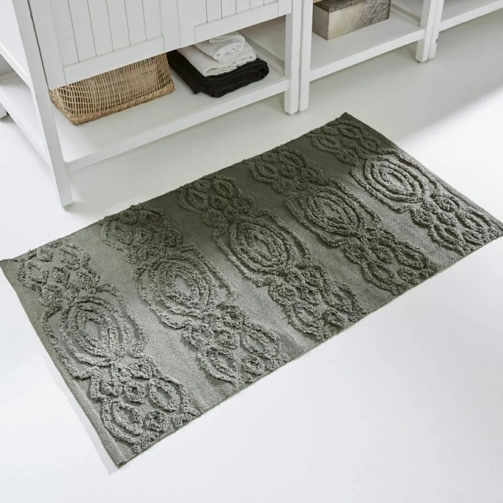 Bäder sind heute mehr als nur ein Nutzraum. Jetzt stehen Wellness und eine wohnliche Gemütlichkeit im Vordergrund, die das Bad zu einer echten Wohlfühloase machen. Umso schöner, wenn sich auch praktische Accessoires wie diese Badematte so dekorativ und stilvoll präsentieren. Das getuftete Ornamentenmuster wird dabei zum Blickfang – es lässt eine schöne erhabene Struktur entstehen und verwöhnt Ihre Füße mit einer kuschelig weichen Haptik. Dazu kommt die natürliche Baumwollqualität, die wie geschaffen ist für den alltäglichen Gebrauch. Sie ist strapazierfähig, nimmt eine hohe Feuchtigkeit auf und ist ganz unkompliziert in der Maschine waschbar. Das Beste ist jedoch die Vielseitigkeit des Badvorlegers – vor der Dusche, der Badewanne oder dem Waschtisch – eben überall dort, wo Funktion und Komfort gefragt sind.