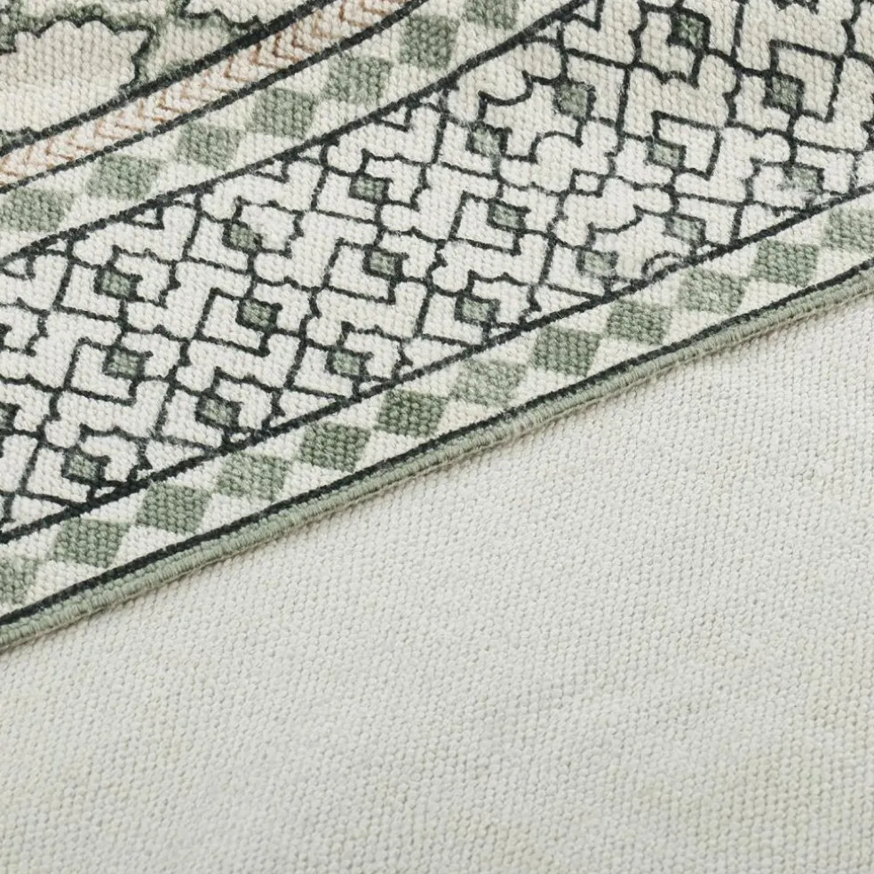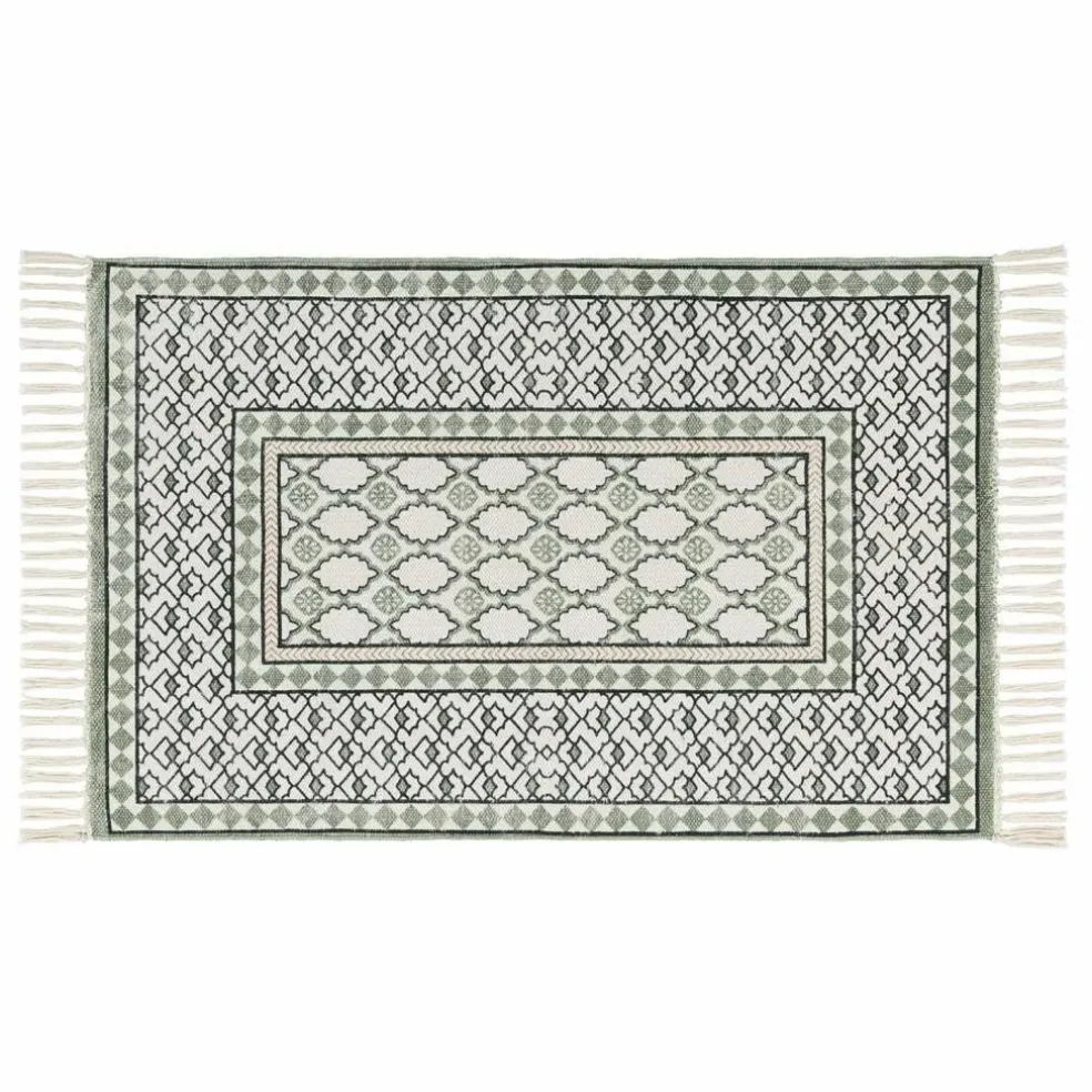 Manchmal sind es die kleinen Dinge, die den Ton angeben. Diese Badematte mit kunstvollem Aztekenmuster macht aus einem funktionalen Alltagsprodukt ein echtes Stilobjekt. In sanftem Grün und Naturweiß gehalten, bringt sie ein Gefühl von Erdung und Wohnlichkeit in den Raum – fast wie ein Stück traditioneller Handwerkskunst. Die strukturierte Oberfläche aus gewebter Baumwolle ist nicht nur sanft zur Haut, sondern verleiht dem Teppich seine griffige, natürliche Ausstrahlung. Dank der bewusst nicht gummierten Rückseite bleibt der textile Charakter erhalten – perfekt für alle, die Wert auf Natürlichkeit und Design legen.