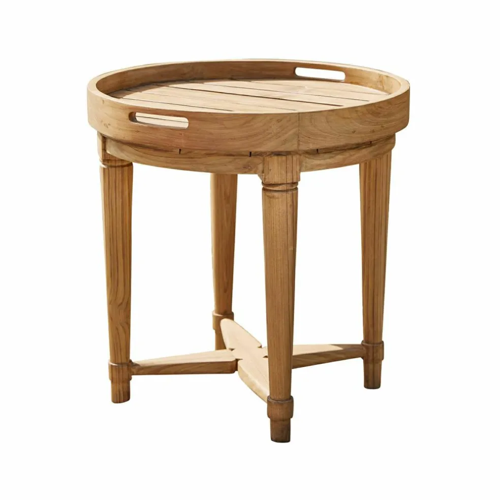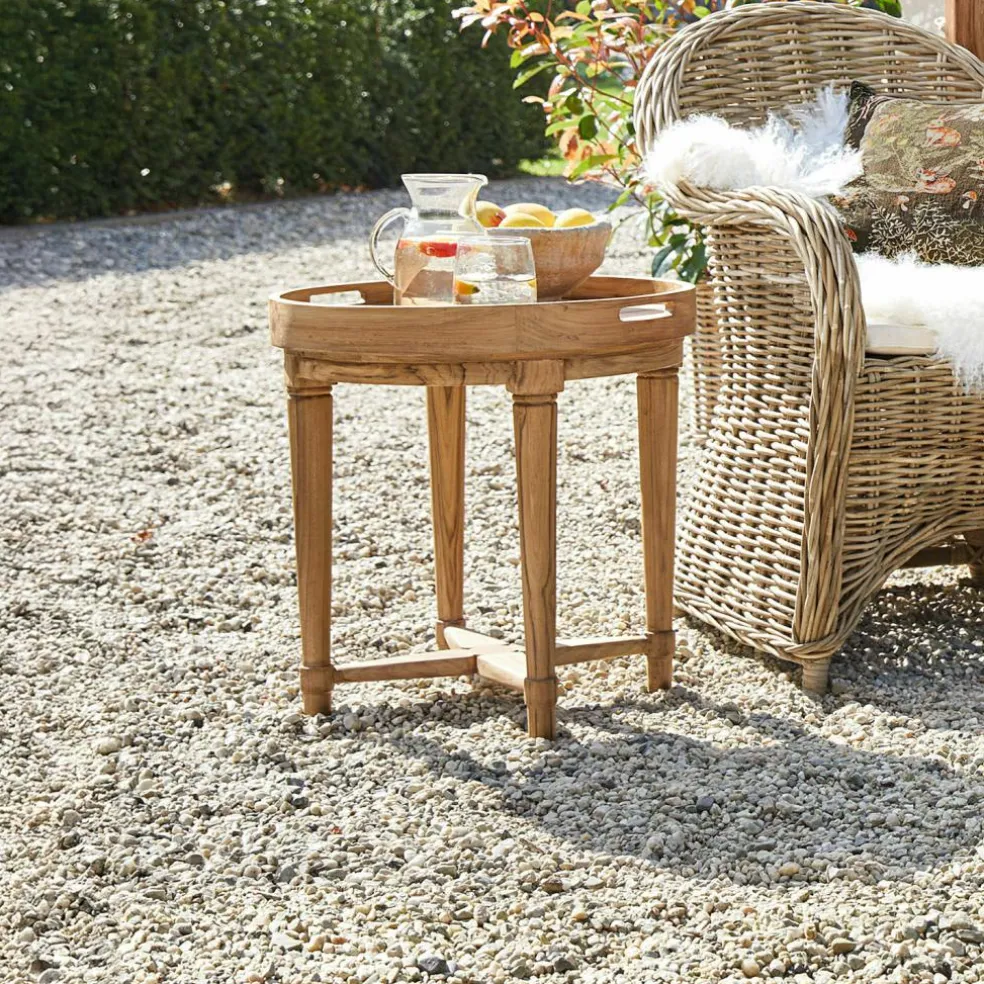 Dieser Beistelltisch ist mehr als nur eine Ablage – er ist ein kleines Statement für stilvolles Outdoor-Living. Gefertigt aus edlem Teakholz, zeigt er eine fein gemaserte Oberfläche, die Wärme und Natürlichkeit ausstrahlt. Die runde Form wirkt einladend, das abnehmbare Tablett mit praktischen Griffmulden sorgt für Flexibilität im Alltag. Ob als Kaffeetisch auf der Terrasse, als Begleiter neben der Sonnenliege oder für den spontanen Sekt im Garten – dieser Tisch schafft genau den richtigen Rahmen für entspannte Momente unter freiem Himmel.