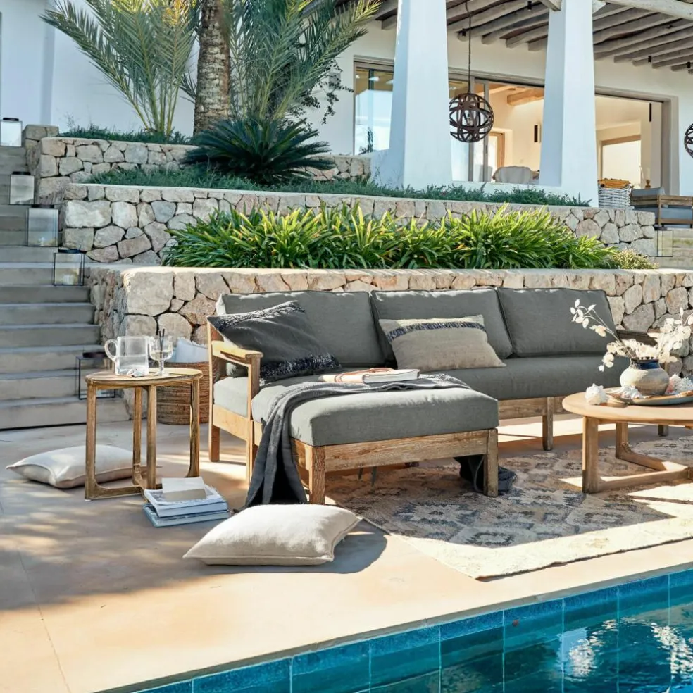 Dieser stilvolle Beistelltisch aus wiederaufbereitetem Teakholz bringt Nachhaltigkeit und Design in Einklang. Die dezente Antikgrau-Färbung, die wie gekalkt wirkt, verleiht ihm eine zeitlose Ästhetik, die sich sowohl in modernen als auch klassischen Umgebungen hervorragend einfügt. Dank seines witterungsbeständigen Materials ist er perfekt für den Einsatz im Freien geeignet und behält auch nach vielen Sommern seinen Charme. Die robuste Bauweise und die sanfte Oberfläche machen ihn zu einem langlebigen Begleiter, ob als praktische Ablage oder stilvolles Accessoire.