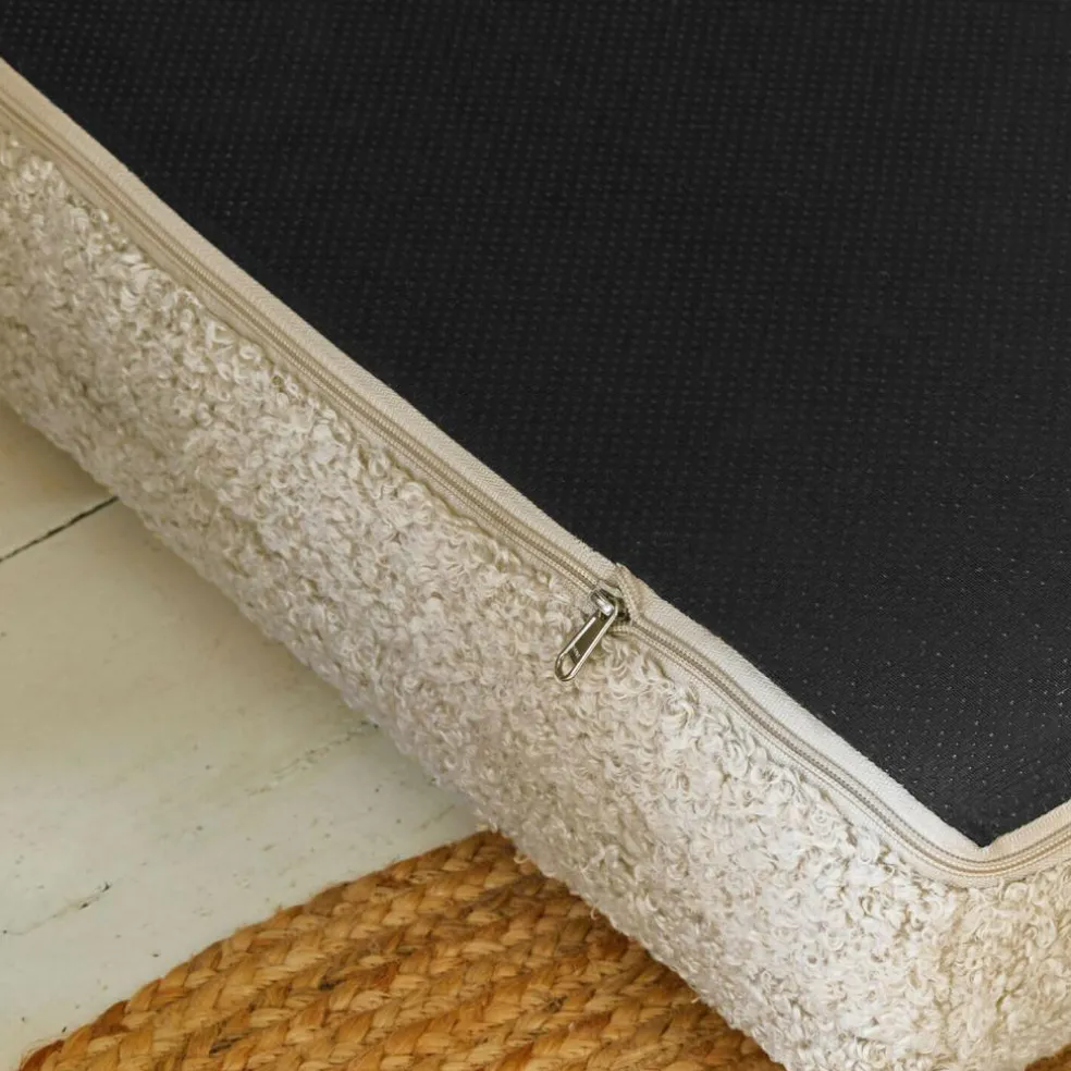 Für alle, die ihrem Liebling nicht einfach nur einen Platz zum Ausruhen bieten möchten, sondern ein echtes Wohlfühlparadies: Dieses Haustierbett mit weicher Liegefläche passt sich sanft der Körperform an. Der samtig-weiche Bouclé-Bezug verströmt eine wohnliche Wärme und lädt zum Dösen ein. Gleichzeitig sorgt die feste Umrandung für ein Gefühl von Geborgenheit – wie ein schützender Rahmen rund um süße Träume. Die Unterseite ist zudem rutschfest. Und damit das Bett auch optisch überzeugt: Der Bezug ist abnehmbar und waschbar – für anhaltende Frische im Alltag.
