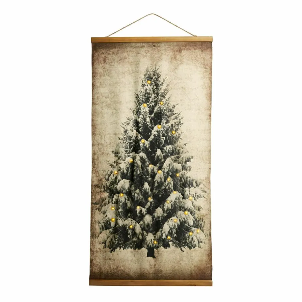 Ein wundervolles Gemälde! Verwandeln Sie Ihr Zuhause in ein winterliches Wunderland. Dieses zauberhafte Kunstwerk mit Antik-Finish verleiht jedem Raum den Charme vergangener Zeiten. Es zeigt einen mächtigen Tannenbaum mit Schnee auf den starken Ästen. Der Holzrahmen verleiht dem Bild einen besonders stilvollen und historischen Look. Zusätzlich verfügt es über integrierte kleine, insgesamt 44 LED-Lichter, die den Baum sanft zum Leuchten bringen. Dabei sind im Bild zwei Lichterketten integriert, die auch getrennt voneinander an- und ausgeschaltet werden können. Mit dem Jute-Seil zum Aufhängen lässt sich das Bild auch mühelos platzieren.
