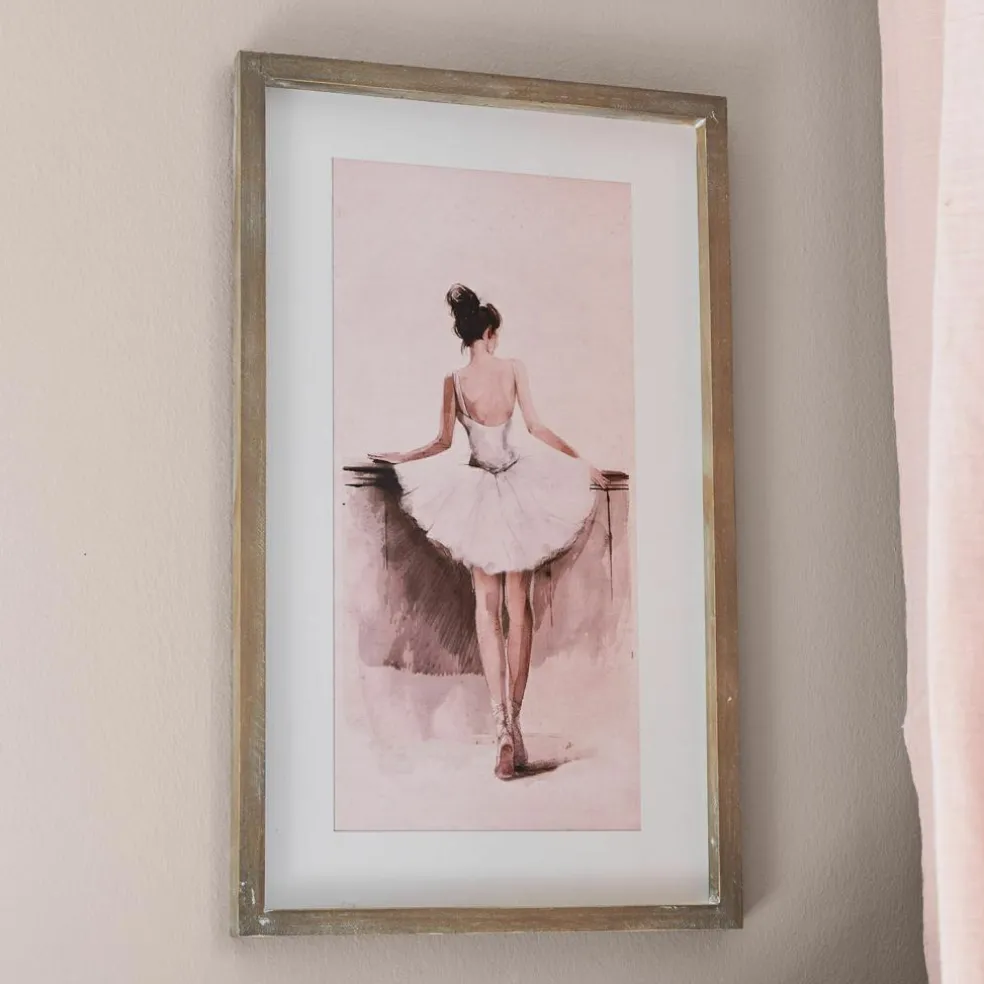 Mit anmutiger Leichtigkeit steht sie da – die Ballerina im Tutu, eingefangen in einem stillen Moment vor dem Tanz. Dieses Bild bringt genau jene stille Poesie ins Kinderzimmer, die kleine Träume groß werden lässt. Eingefasst ist das Motiv in einen detailreichen Rahmen in zartem Weiß, der mit seinen ornamentalen Kanten ein Gefühl von liebevoller Handarbeit vermittelt. Ob als festes Dekoelement oder wandelbarer Rahmen für neue Lieblingsmotive – dieses Bild ist mehr als bloß ein Blickfang. Es erzählt Geschichten, inspiriert Fantasie und bringt ein Hauch von Bühnenzauber an die Wand.