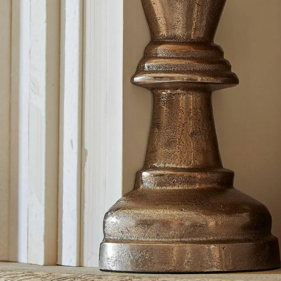 Umarmen Sie die Welt der Literatur und Strategie mit diesem eleganten Buchstützen-Set aus Aluguss, das an die edlen Schachfiguren König und Turm erinnert. Jedes Stück dieser Reihe ist in seiner Darstellung detailreich und durch das antike Finish auch visuell ansprechend. Sie stehen fest und würdevoll, bereit, die Werke großer Denker und Geschichtenerzähler zwischen sich zu halten. Die Faszination für das Schachspiel, ein zeitloses Symbol für strategische Finesse und intellektuelle Tiefe, wird in diesen Buchstützen lebendig. Sie sind ein unverzichtbares Accessoire für jeden, der Bücher und das Spiel der Könige schätzt und sein Zuhause oder Büro mit einem künstlerischen und funktionalen Element ausstatten möchte.