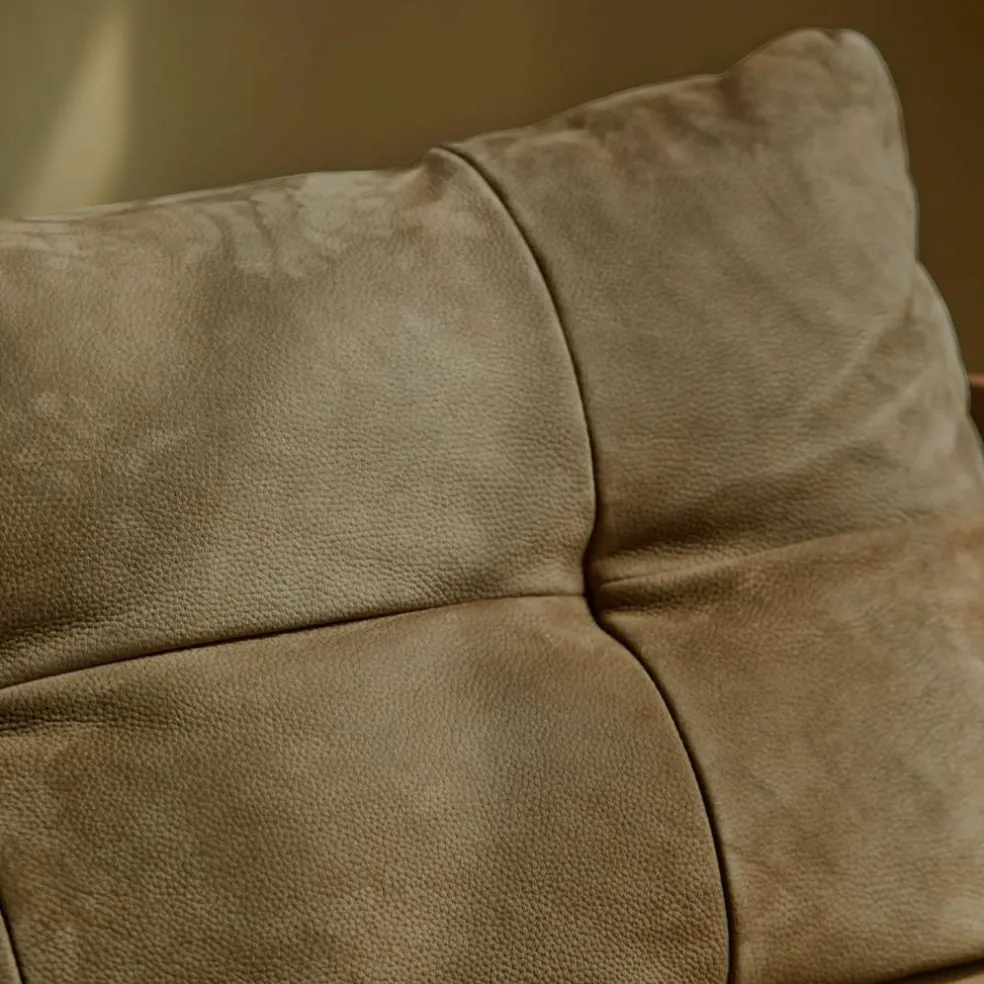 Diese Chaiselongue ist mehr als nur ein Sitzmöbel – sie ist ein persönliches Ruheversprechen. Der Bezug aus echtem Nubukleder besticht durch seine samtige Haptik, die sich mit jedem Griff vertrauter anfühlt – ein Leder mit Charakter und Tiefe. Großzügige Steppungen betonen die voluminöse Polsterung und laden zum Einsinken und Verweilen ein. Das solide Gestell aus Eisen trägt die weich gepolsterte Fläche mit Leichtigkeit, während geschwungene Latten aus warmem Holz dem Design handwerkliche Raffinesse verleihen. Lederbänder verbinden Sitzfläche und Unterbau auf charmante Weise – ein liebevolles Detail, das den Manufaktur-Charakter unterstreicht. Als Ergänzung zum Sessel „Horraine“ (23770) entsteht ein Ensemble aus Komfort, Stil und Substanz – für entspannte Stunden mit Anspruch.
