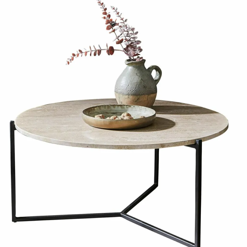 Dieser Couchtisch vereint zeitlose Schönheit und modernen Minimalismus in einem atemberaubenden Design. Die Tischplatte aus Travertin strahlt natürliche Eleganz aus und ist durch ihre einzigartige Maserung und Farbgebung ein wahres Unikat. Jede Platte erzählt ihre eigene Geschichte und bringt ein Stück Natur in Ihr Zuhause. Das robuste Gestell aus schwarzem Eisen bildet einen harmonischen Kontrast zu den warmen Naturtönen des Steins und verleiht dem Tisch eine zeitgemäße, industrielle Note. Die glatte Oberfläche des Travertins lädt dazu ein, sie zu berühren und zu bewundern, während das schlichte, aber elegante Design sich nahtlos in jedes Wohnambiente einfügt.