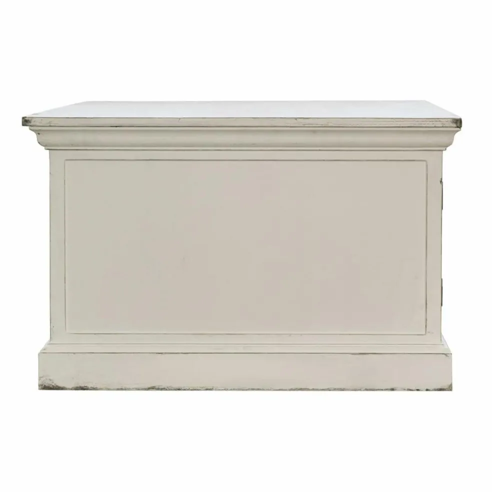 Ein Möbelstück, das Charakter beweist – dieser Couchtisch vereint Form und Funktion auf ganz eigene Weise. Die klare Linienführung trifft auf liebevolle Details im Landhausstil. Während die eine Seite mit zwei tiefen Schubladen Stauraum für alles Wichtige bietet, lassen sich auf der gegenüberliegenden Seite durch die Glastüren hübsche Accessoires inszenieren. Das Zusammenspiel aus antikweißer Lackierung und den leicht gekälkten Holzfronten erzeugt eine sanfte Spannung zwischen rustikalem Flair und wohnlicher Eleganz. Ein Tisch, der nicht nur praktisch, sondern auch ein Blickfang ist – vom ersten bis zum letzten Kaffee.
