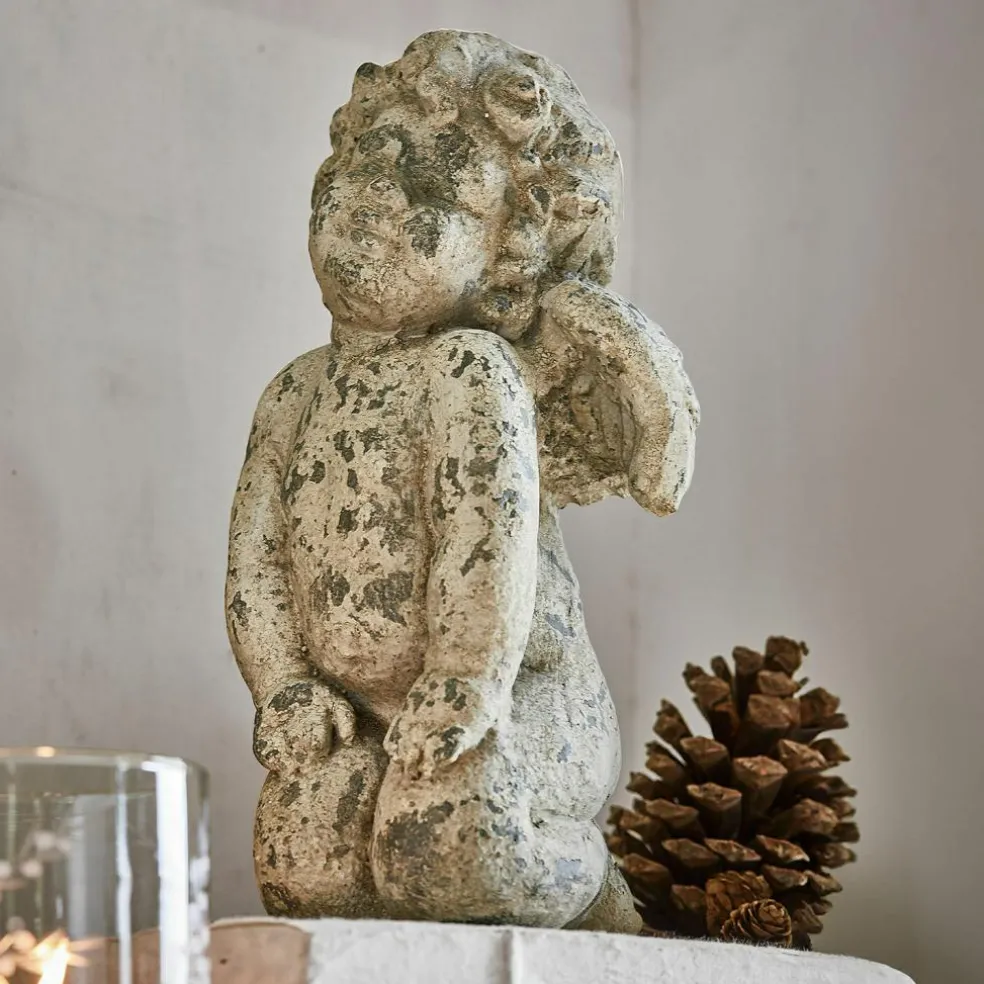 Dieser Deko-Engel weckt romantische Gefühle und bringt zauberhaften Vintage-Charme in Ihr gemütliches Freiluftdomizil. Auf der Konsole oder den Treppenstufen Ihrer Terrasse kommt er besonders schön zur Geltung und beschert jedem Betrachter ein kleines Lächeln ins Gesicht. Das Schmuckstück mit süßen Flügeln ist handgefertigt. Das antike Finish unterstreicht die nostalgische Anmutung. Auch im Innenbereich entfaltet der hübsche Engel eine großartige Wirkung – ob auf der Kommode, im Regal oder auf der Fensterbank.