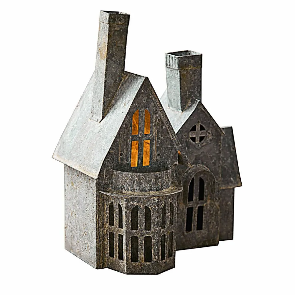 Die Welt wie aus dem Märchenbuch verkörpert dieses wundervolle Deko-Haus, das nicht nur zur Weihnachtszeit zauberhaften Charme versprüht. In liebevoller Handarbeit wird es aus handgepresstem Eisen gefertigt – mit zwei offenen Schornsteinen und vielen kleinen Fensterchen, die durch das entfachte Licht der eingesetzten Kerzen effektvoll zum Leuchten kommen. Und weil das Haus im antiken Look noch reizvoller wirkt, ist es zusätzlich mit einem Rost-Finish veredelt. Ein hübsches Deko-Objekt, das auf der Konsole oder dem Beistelltisch im Wohnzimmer alle Blicke auf sich zieht und lange, gemütliche Winterabende stimmungsvoll untermalt. Als Lichtquelle empfehlen wir Teelichter, diese sind jedoch im Lieferumfang nicht enthalten.