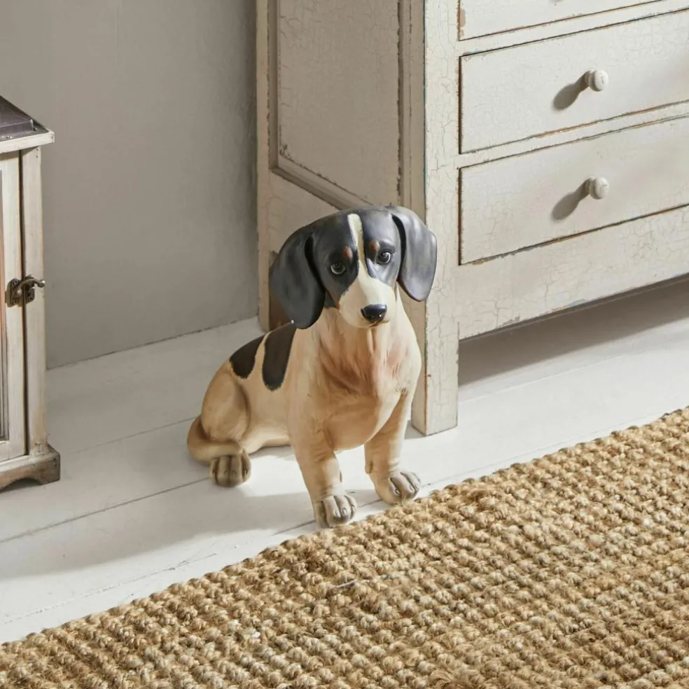 Das perfekte Accessoire für alle, die Hunde lieben – dieser zuckersüße Junghund bezaubert mit sehr natürlicher Gestaltung und treuem Blick. Er sieht ganz echt aus und besteht aus handbemaltem Polyresin. Von der Nase bis zu den Pfötchen ist er liebevoll gefertigt. Er setzt einen freundlichen Deko-Akzent auf dem Tisch, im Regal oder auch am Fenster. Als nette Geschenkidee für Tierfreunde oder auch Kinder macht das mittelgroße Hündchen ebenso eine gute Figur. Es sieht sehr hübsch in einem Landhaus-Ambiente aus und entlockt allen Betrachtern ein Lächeln.