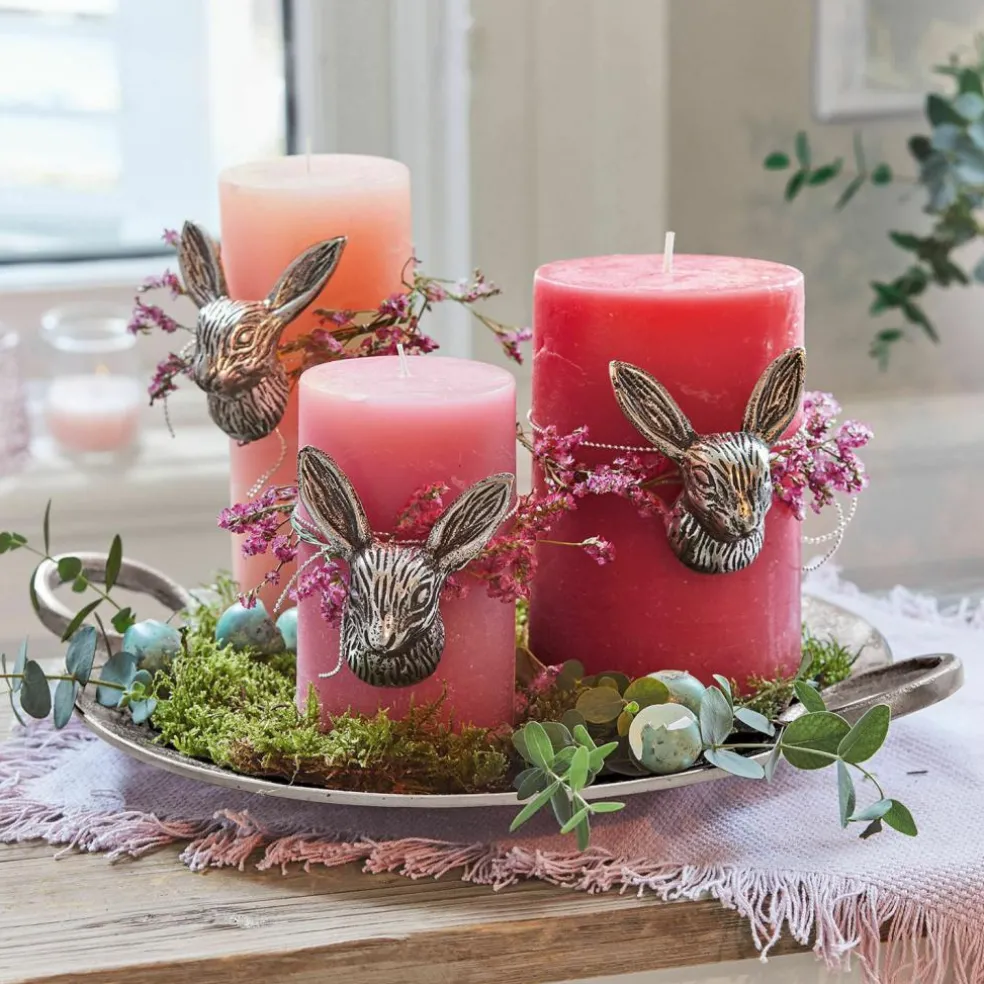 Eine neue Idee für Ihr schönes Zuhause – und ideal für alle, die gerne die Jahreszeiten in Ihr Interieur-Design einbinden: Wie es zu Weihnachten Kugeln braucht, braucht es zu Ostern Eier und Hasen. Wie wäre es mit einer liebevollen Dekoration für Ihre Kerzen? Mit diesen fein gearbeiteten Hasen-Pins aus hochwertigem Aluminiumguss verwandeln Sie die Lichtbringer in Schmuckstücke. Ganz einfach, ganz flott. So entsteht ein ganz neues Flair und das gemütliche Beisammensein mit Ihren Liebsten wird ein besonderes Ereignis.