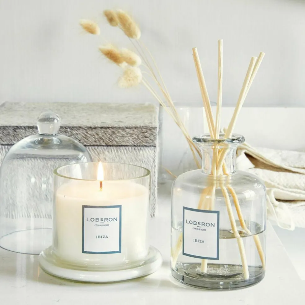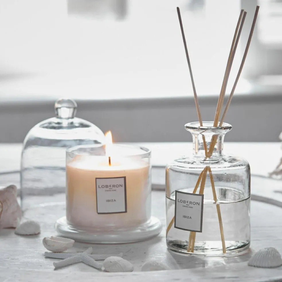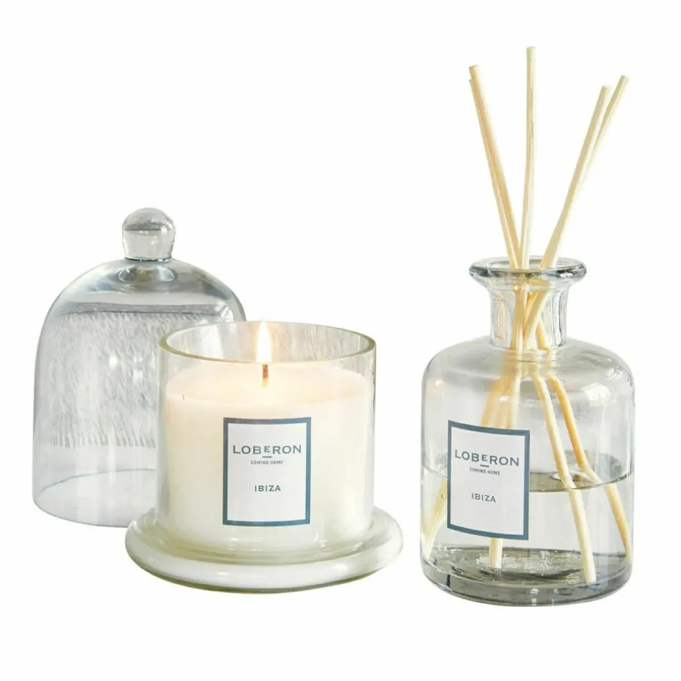 Ein traumhafter Duft und eine luxuriöse Dekoration in einem – dieses wertvolle Set ist perfekt für alle, die edle Düfte lieben. Erleben Sie eine stilvolle Duftkomposition, die jeden Raum in eine traumhafte Duftwelt entführt. Dabei spielen zwei Duftspender die Hauptrolle: Die stilvolle Duftkerze hat eine schmückende Glas-Cloche, der Raumduft mit Stäbchen ist in einem hübschen, gläsernen Behälter untergebracht. Der Flüssigduft wird in einem separaten Behälter geliefert und kann daher individuell portioniert werden. Alle Glasbehälter sind mundgeblasen und mit einem LOBERON-Print verziert. Ein tolles Set mit geschmackvollem Akzent und auch eine sehr gute Geschenkidee. Die hölzernen Duftstäbchen geben den Duft kontinuierlich und dosiert ab, während die Kerze für romantisches Licht und ein Dufterlebnis zugleich sorgt. Die perfekte Wahl für das Schlafzimmer, im Bad oder im Wohnzimmer und wirklich ein Erlebnis für alle Sinne. Derzeit gibt es unser Dufset in diesen himmlischen Duftrichtungen: Zedernholz, Oud, Ibiza und Hearth & Birch. Der Geruch von Zedernholz erklärt sich natürlich von selbst. Der Duft Oud eröffnet mit einem würzigen Zitrusakkord aus Kardamom und Bergamotte. Das Hauptthema ist ein holziger Komplex aus Agarholz, Zedernholz und Patschuli mit einem blumigen Lilienakkord. Die Basisnote besteht aus holzigem Amber mit einem süßen Benzoe-Vanille-Moschus-Charakter. Bei Hearth & Birch stehen Zitrusfrüchte und Kräuter im Vordergrund. Ein dezenter Holzrauch-Geruch mischt sich darunter und veredelt die Duftnote. Bei der Variante Ibiza erhalten Sie eine blumige, süße und leicht holzige Durftnote. Vermengt mit etwas Moschus und Kampfer ergibt sich so ein betörender Raumduft.
