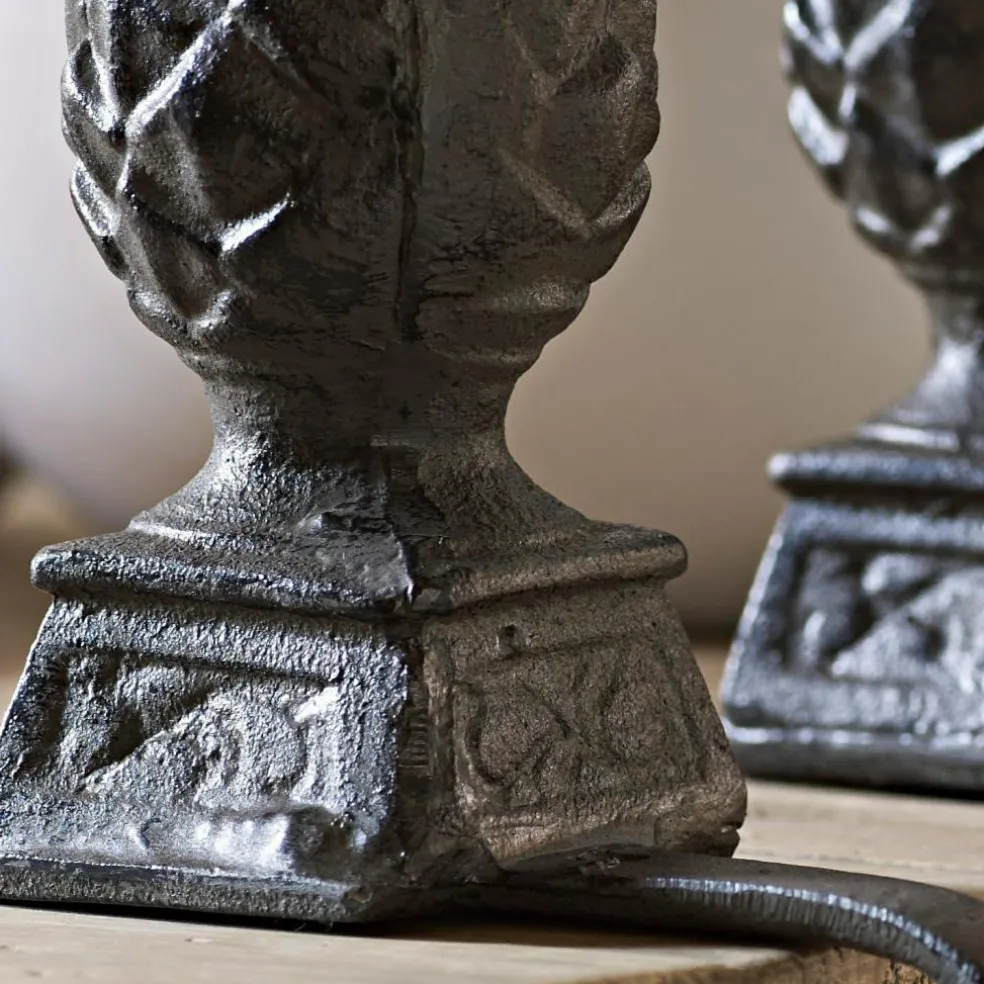Das 2er Set besteht aus eisernen Pinienzapfen im Antik-Look, jeweils mit einem über eine Kante laufenden, praktischen Haken versehen. Unser Tipp: Dekorieren Sie die eisernen Schwergewichte auf dem Kaminsims, einer Kommode oder jeweils an den Seiten eines halbhohen Schrankes oder Regals. An den Haken können Sie dann beispielsweise einen Weihnachtsstrumpf, einen hübschen Strauß Trockenblumen oder auch Ihr Schlüsselbund aufhängen. Reicht das Gegengewicht der Zapfen aus Gusseisen nicht mehr aus um das Anhängsel zu tragen, können Sie die Haken auch ganz einfach mit einem Nagel oder einer Schraube an ihrem Platz befestigen. Das Tolle an diesen massiven Kunstwerken: Selbst ohne tragende Rolle haben die beiden ihre Daseinsberechtigung, denn sie sind einfach ein toller Hingucker.