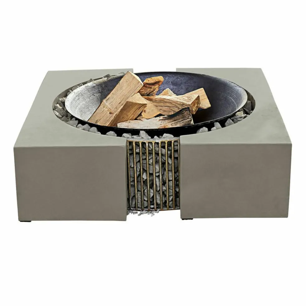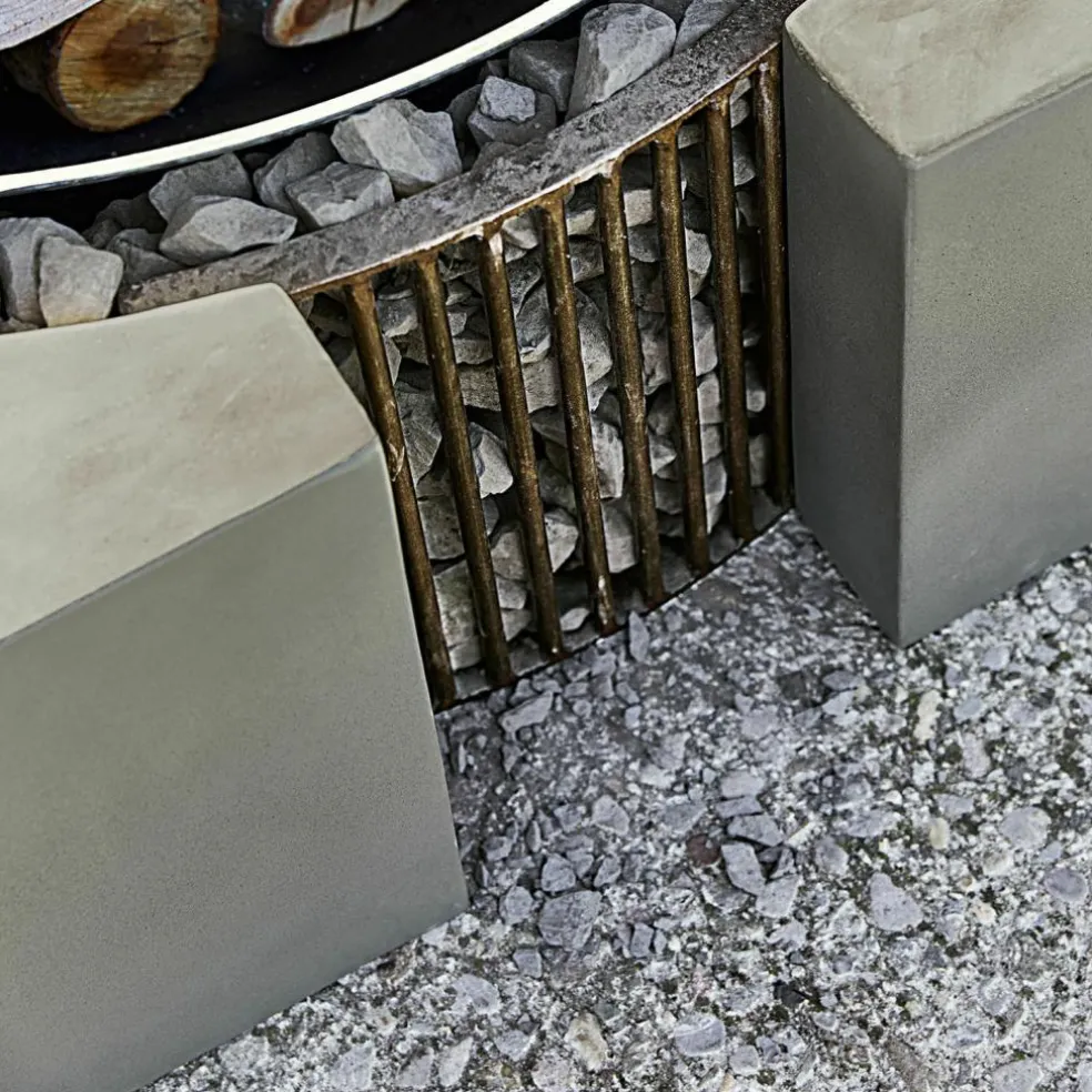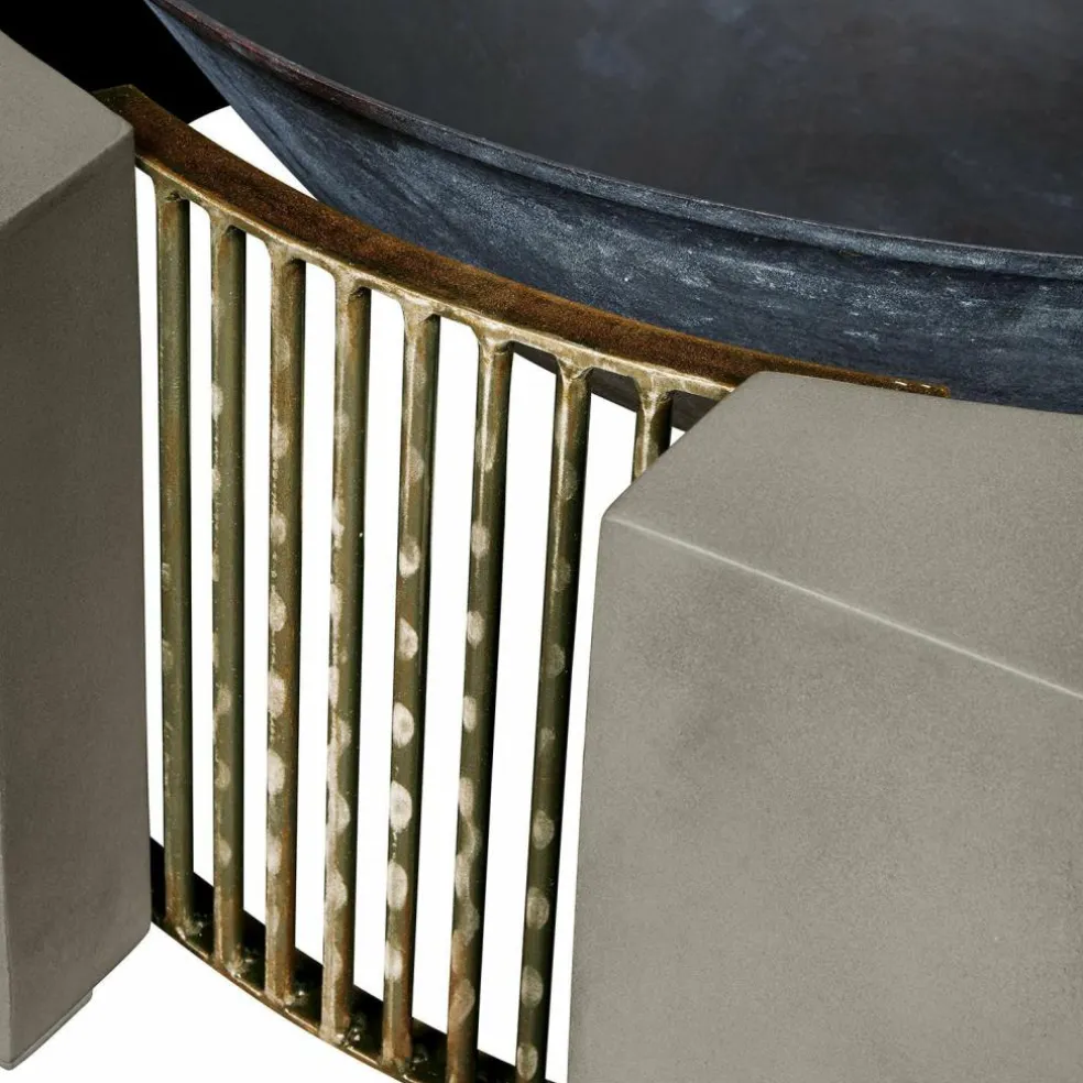 Familienfest, Grillparty, romantischer Abend zu zweit – ein offenes Feuer im Garten ist immer der krönende Abschluss. Das Knistern der Holzscheite, das faszinierende Flammenspiel und der würzige Duft des Holzes verbreiten sofort eine besondere Stimmung im Garten, während das Feuer zugleich für wohlige Wärme sorgt. Mit einer Feuerstelle wie dieser bereichern Sie aber nicht nur Ihre gemütlichen Abende im Freien, sondern Sie werden sich schon bei Tag an dem exklusiven Design dieser Feuerstelle erfreuen. Mit den zwei symmetrischen Elementen aus stabilem Zement wird sie zum stylischen Design-Objekt, das in jedem Outdoor-Bereich für Bewunderung sorgen wird. In der Mitte zwischen den Zement-Blöcken liegt ein verbindendes Eisengestell, in das feuerfeste Steine gefüllt werden, damit anschließend die Schale aus massivem Gusseisen darüber positioniert werden kann. Im Dunkeln aber, wenn die Flammen lodern, erinnert die Feuerstelle an die ersten Feuerstellen in grauer Vorzeit und lässt Sie die archaische Kraft und Magie des offenen Feuers noch intensiver erleben. Um die Schale stabil im Zementrahmen zu fixieren, brauchen Sie einige feuerfeste Steine, die nicht im Lieferumfang enthalten sind.