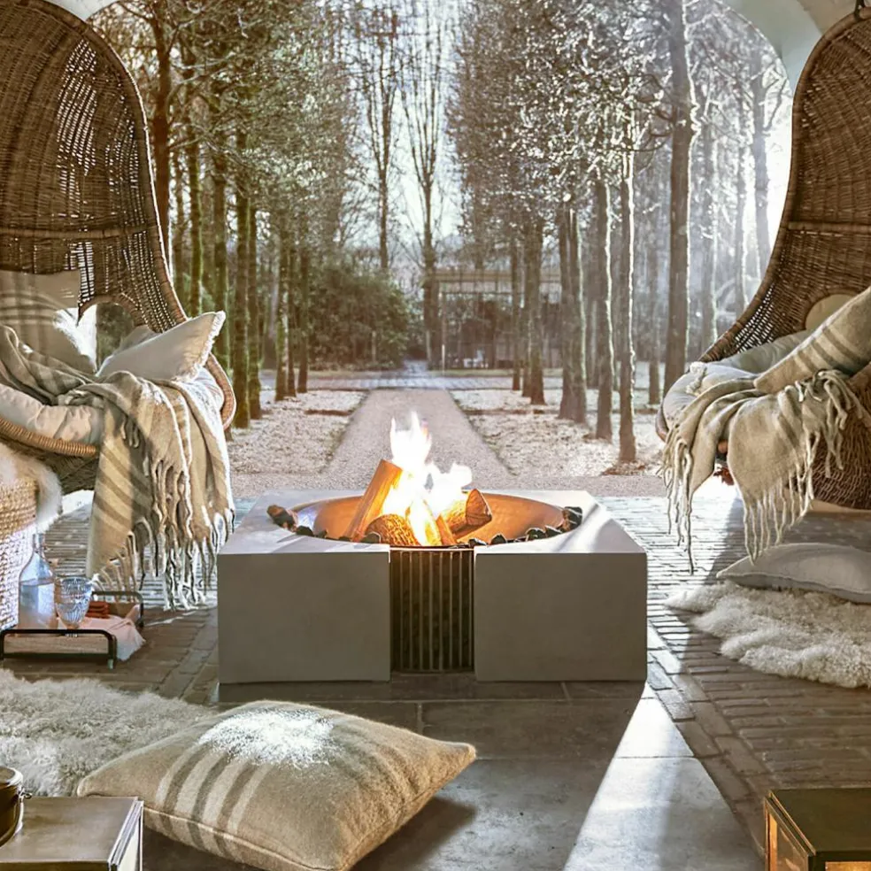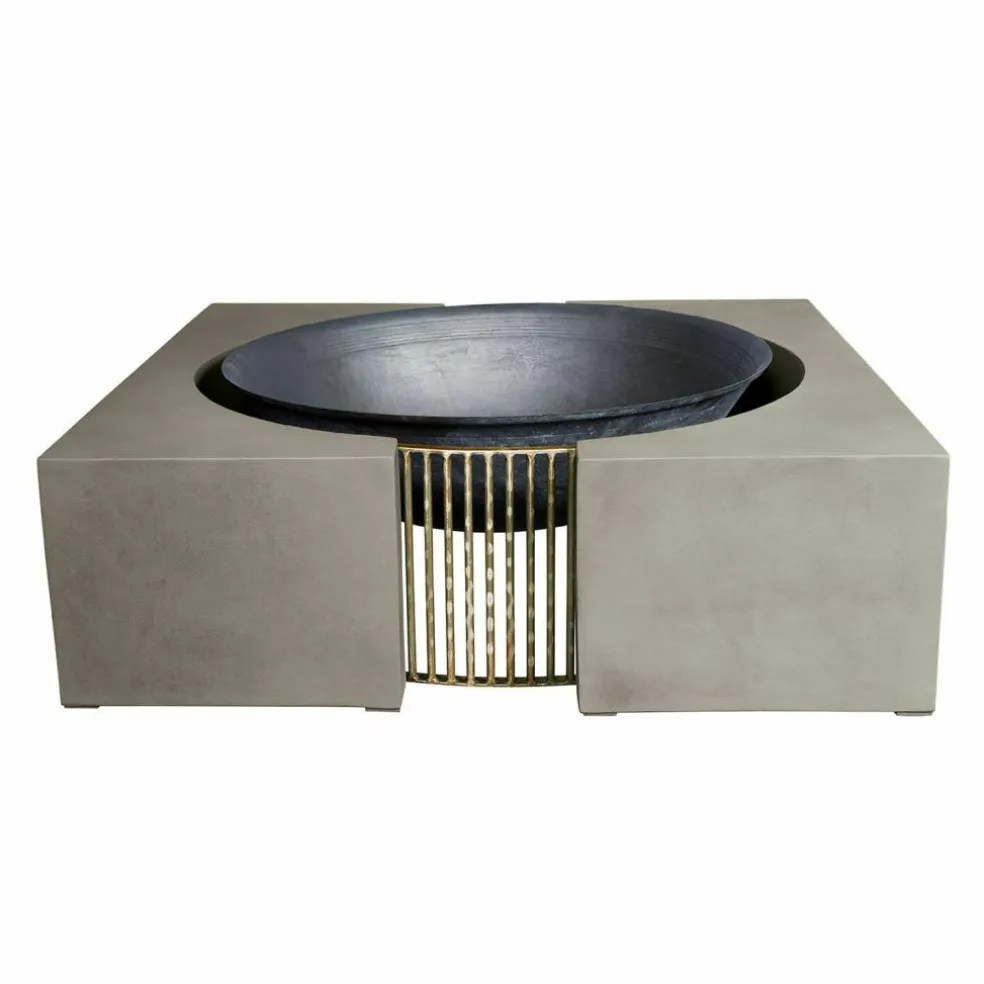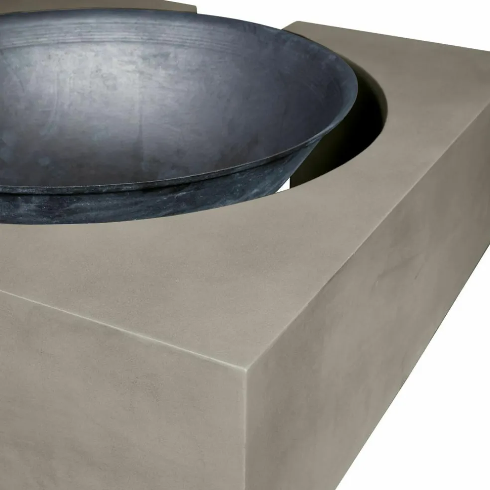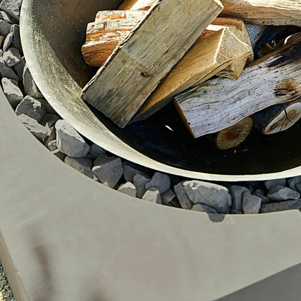 Familienfest, Grillparty, romantischer Abend zu zweit – ein offenes Feuer im Garten ist immer der krönende Abschluss. Das Knistern der Holzscheite, das faszinierende Flammenspiel und der würzige Duft des Holzes verbreiten sofort eine besondere Stimmung im Garten, während das Feuer zugleich für wohlige Wärme sorgt. Mit einer Feuerstelle wie dieser bereichern Sie aber nicht nur Ihre gemütlichen Abende im Freien, sondern Sie werden sich schon bei Tag an dem exklusiven Design dieser Feuerstelle erfreuen. Mit den zwei symmetrischen Elementen aus stabilem Zement wird sie zum stylischen Design-Objekt, das in jedem Outdoor-Bereich für Bewunderung sorgen wird. In der Mitte zwischen den Zement-Blöcken liegt ein verbindendes Eisengestell, in das feuerfeste Steine gefüllt werden, damit anschließend die Schale aus massivem Gusseisen darüber positioniert werden kann. Im Dunkeln aber, wenn die Flammen lodern, erinnert die Feuerstelle an die ersten Feuerstellen in grauer Vorzeit und lässt Sie die archaische Kraft und Magie des offenen Feuers noch intensiver erleben. Um die Schale stabil im Zementrahmen zu fixieren, brauchen Sie einige feuerfeste Steine, die nicht im Lieferumfang enthalten sind.