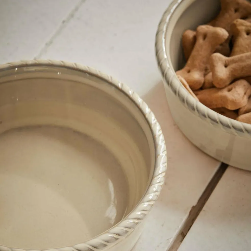 Wer sagt, dass funktionale Dinge nicht auch schön sein dürfen? Diese beiden Futternäpfe aus glasiertem Steinzeug beweisen das Gegenteil. In weichem Beige gehalten und mit einem zarten, ornamentartigen Rand versehen, bringen sie eine ruhige, gepflegte Atmosphäre in jedes Zuhause. Ob für Wasser oder Futter – ihre harmonische Form und die angenehm glatte Oberfläche machen jede Mahlzeit zu einem kleinen Genussmoment. In Kombination mit dem passenden Halter (Artikel 25955) wird aus dem praktischen Duo ein dekorativer Hingucker, der auch ästhetische Ansprüche erfüllt.