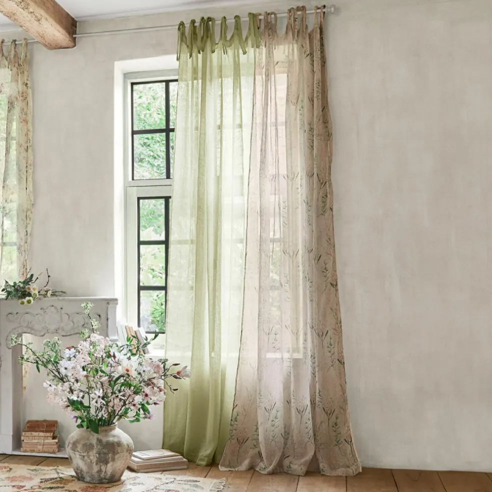 Wohn-Textilien machen das Interieur erst lebendig und unverwechselbar. Mit dieser edlen Gardine am Fenster gelangen Sie schnell und auf einfache Weise zu einer traumhaften Raumstimmung. Ganz nach Ihren individuellen Vorstellungen können Sie Ihr Wunsch-Textil aus zwei verschiedenen Design-Varianten auswählen: In floralem Muster bringt sie einen Hauch Romantik in Ihre vier Wände. Aber auch in zartem Uniton verliert die Gardine nichts von Ihrer Wirkung. Das hochwertige Leinengewebe mit etwas gröberer Struktur ist ideal für den natürlichen Edel-Look – durch die zarte Transparenz erscheint der Raum in einer angenehmen Helligkeit und schützt dennoch vor neugierigen Blicken. Praktisch: Dank Bindebänder lässt sich die Gardine nicht nur dekorativ an der Vorhangstange anbringen, sondern auch in der Länge individuell anpassen. Genießen Sie nun das neue, wohnliche Gesamtbild Ihres Raumes – ob romantisch im Shabby-Look, gemütlich im Landhaus-Stil oder zurückhaltend chic im Scandinavian-Style. Kombinieren Sie auch beide Farbvarianten miteinander und erhalten einen wundervollen Einklang an Farbe und Muster.