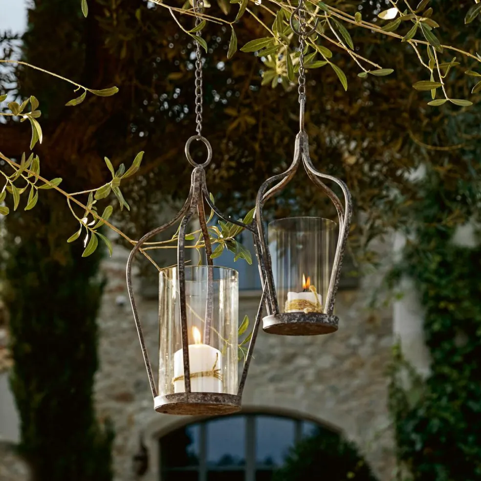 Selbst einem kleinen Teelicht verleiht diese Hängelaterne einen stilvollen Auftritt. Bringt sie doch auf subtile Weise zwei Materialwelten zusammen und erzeugt dabei ganz viel Sinnlichkeit. Den Rahmen bildet ein elegant geschwungenes Gestell aus geschmiedetem Eisen, das durch das antike Finish den gewünschten Nostalgie-Charme unterstreicht. In der Mitte ist ein rundes Glasgefäß gesetzt, das für die Bestückung mit einer Kerze auch abnehmbar ist. Getragen wird das Ganze von einer Eisen-Gliederkette, die sich durch einen Haken problemlos aufhängen lässt. Lassen Sie sich verzaubern von diesen stimmungsvollen Accessoires, die sich mit dem Boho-Chic, Vintage-Stil oder Landhaus-Look bestens vertragen. In zwei unterschiedlichen Größen verbreiten sie viel Flair im Wohnbereich oder auf der Terrasse. Zelebrieren Sie hier jenen kostbaren Moment, wenn der Tag sich dem Ende neigt – also Laternen zum Leuchten bringen, gemütlich auf die Lounge legen und bei einem Glas Wein den Sonnenuntergang genießen.