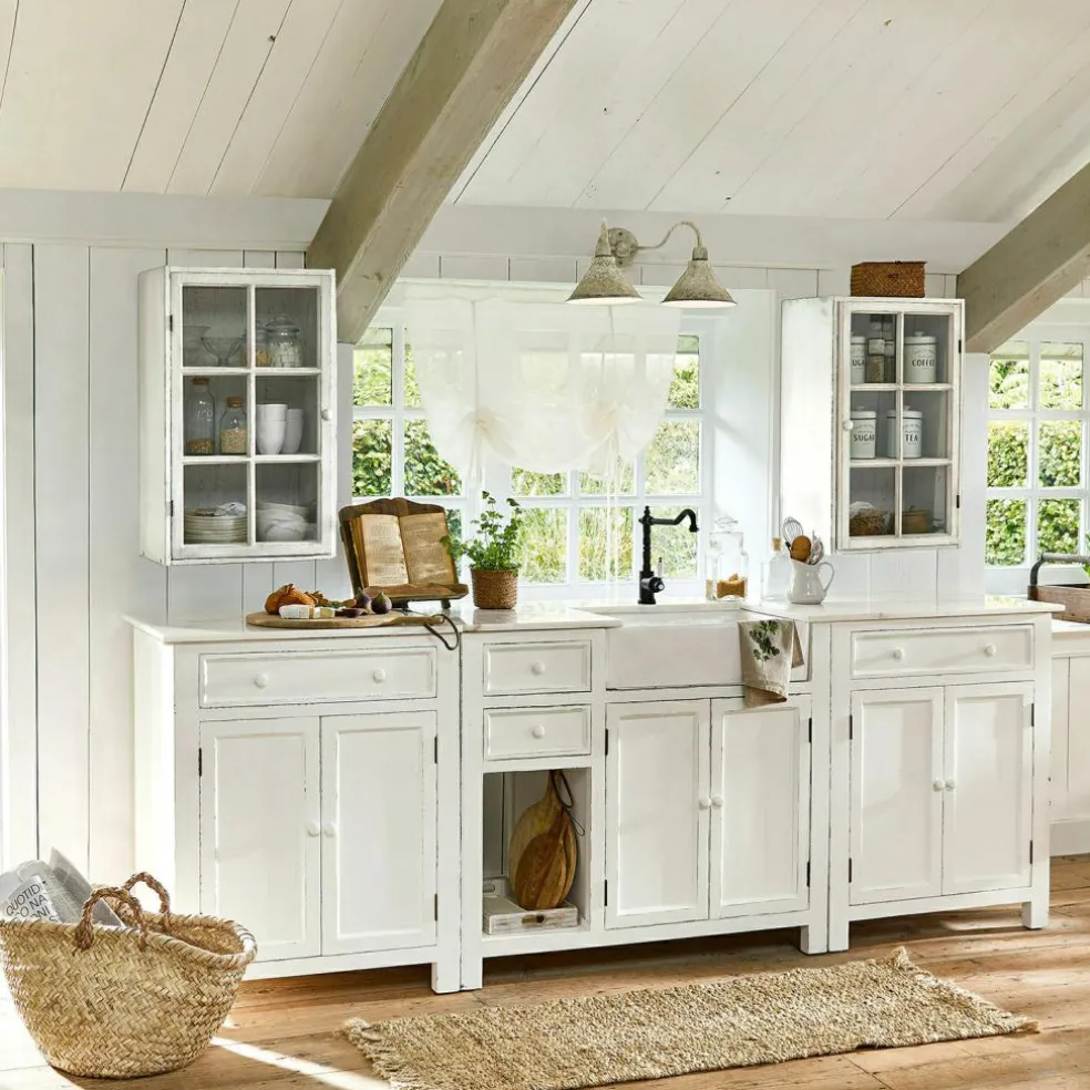 Dieses wunderschöne Duo ist wirklich ein Traum im Landhaus-Stil. Die beiden edlen Hängeschränke bestehen aus Echtholz und schönen Glastüren. Das Holz ist lackiert und mit einem Antik-Finish versehen, was für einen Hauch Nostalgie sorgt. Die Einlegeböden sind herausnehmbar und verstellbar. Diese reizenden und geräumigen Schränkchen bieten mit vielen Innenfächern wunderbar Raum, um allerlei Schönes darin aufzubewahren und dekorativ zu präsentieren – Gläser und Tassen, hübsche Kerzen, Parfums oder andere Lieblingsstücke finden darin ihren Platz und können bestens bestaunt werden. So halten Sie einfach Ordnung und haben Ihre Schätze dennoch immer im Auge. Durch die Wandanbringung geht auch im kleinsten Zimmer kein Platz verloren. Wer möchte, kann sie natürlich auch auf den Boden stellen und vielleicht als kreative Alternative zum Nachttisch nutzen. Sehr gut ergänzen sie vor allem den Spülenschrank 14126 und die passende Kommode 21384 zu einer außergewöhnlich schönen Küchenzeile. Diese beiden wertvollen Schmuckstücke adeln wirklich jeden Raum, ob Küche, Bad oder alle Wohnräume. Durch den sehr attraktiven und zeitlosen Stil haben Sie hieran ganz sicher lange Freude.