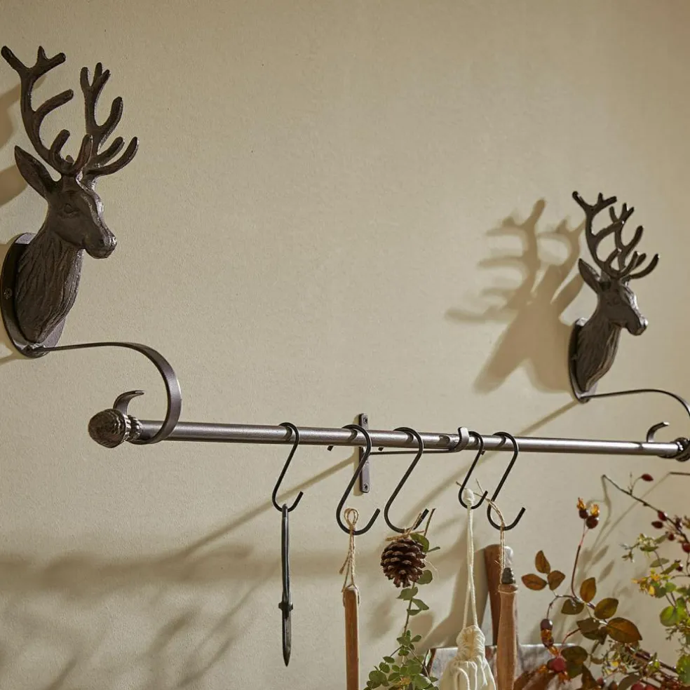 Ein Hauch von Hütte, ein Stück Natur für Zuhause: Diese Hakenleiste vereint Funktionalität mit einem Hauch wilder Romantik. Zwei kunstvoll gearbeitete Tierköpfe aus Gusseisen halten eine schlanke Eisenstange in Antikschwarz – ideal, um Geschirrtücher, Kräuterbündel oder kleine Küchenhelfer stilvoll in Szene zu setzen. Besonders schön wirkt die plastische Struktur der stilisierten Tierhalter, die mit feinen Details wie dem Geweih und der Fellstruktur überzeugen. Die Oberfläche ist bewusst rau gehalten, um den authentischen Charakter des Gusseisens zu betonen. Ob in der rustikalen Landhausküche oder als überraschendes Detail in modernen Interieurs – dieses Wandobjekt setzt charmante Akzente mit alpinem Flair.