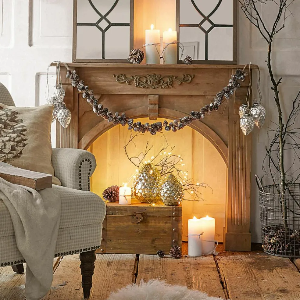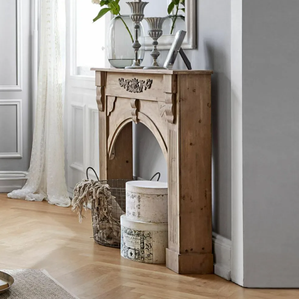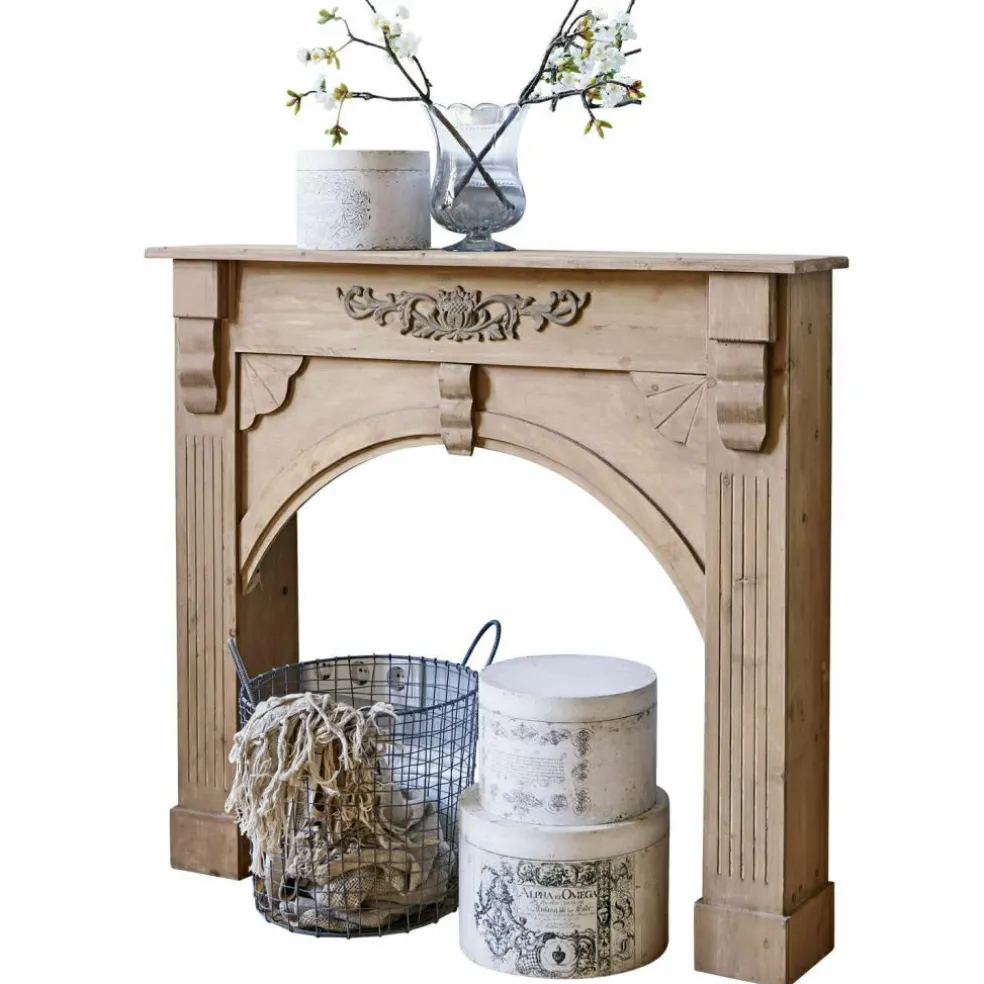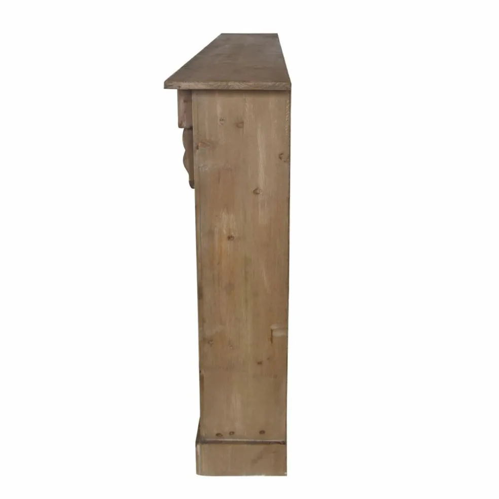 Der eine schwärmt für das unvergleichliche Wohlgefühl, wenn an kühlen Abenden ein lustiges Feuer im Kamin brennt, andere setzen auf die Wirkung romantischen Kerzenscheins und lassen ein Kerzenmeer im Raum erstrahlen. Mit der Kaminkonsole können Sie sich beide Wünsche erfüllen. Wie in einem urigen Cottage in England oder einem noblen Landhaus in Frankreich umrahmt die Kaminkonsole stilvoll ein echtes oder elektrisches Kaminfeuer, zugleich eignet sie sich als Deko-Kamin, der mit vielen echten Kerzen für anheimelnde Stimmung im Raum sorgt. Aber nicht nur in den dunklen Monaten, wenn wir uns nach gemütlichem Licht und Wärme in unseren Wohnräumen sehnen, sondern auch in der übrigen Zeit des Jahres werden Sie immer wieder gerne den Blick auf dieses edle Raum-Accessoire lenken. Ganz im klassischen Stil gefertigt und mit kunstvoll von Hand geschnitzten Details verziert lässt die Kaminkonsole das Flair vergangener Zeiten wieder auferstehen. Aus Tannenholz mit authentischem Antik-Finish.