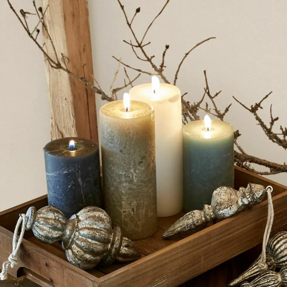 Edle Kerzen mit dem besonderen Etwas – freuen Sie sich auf ein stilsicheres Quartett, das in elegante Nuancen getaucht ist. So schmeicheln die schicken Kerzen aus durchgefärbtem Wachs jedem Ambiente und sind ein Deko-Akzent mit Charme. Sie könnten sie auf einem kreativ arrangierten Adventskranz platzieren, in hübschen Laternen aufstellen oder auf einem ansprechenden Tablett dekorieren. Hier sind der Kreativität keine Grenzen gesetzt. Freuen Sie sich auf kuscheliges Licht zu Hause und machen Sie es sich an kalten Tagen bei einem Glas Punsch und warmem Kerzenlicht so richtig gemütlich. Wer möchte, könnte die feinen Designs auch mit Kerzen-Pins schmücken.