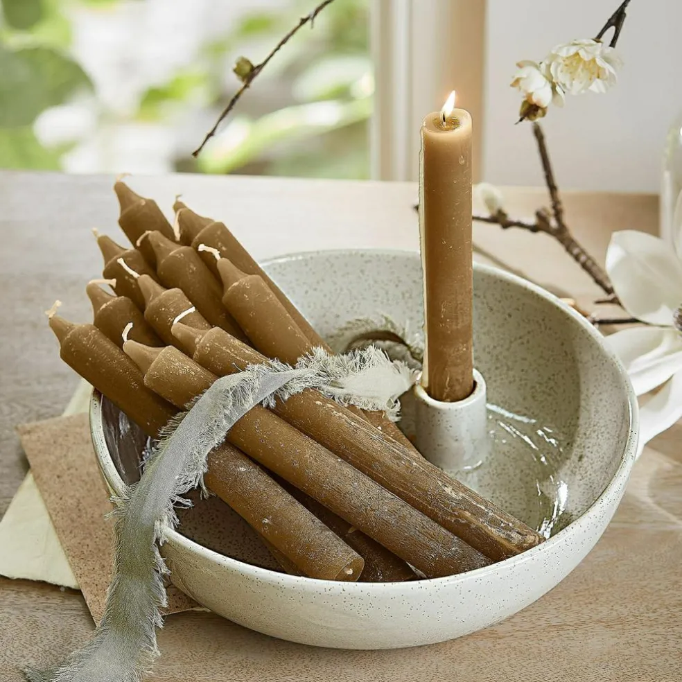 Der Kerzenhalter aus Steingut vereint zeitlose Schlichtheit mit einer natürlichen Anmutung, die jedes Zuhause in eine Wohlfühloase verwandelt. Die sanften, neutralen Farben wirken beruhigend, während die fein gesprenkelte Oberfläche ein dezentes, handwerkliches Flair hinzufügt. Mit seinem klaren Design und dem praktischen Raum rund um die Kerze lädt dieser Halter dazu ein, immer wieder neu gestaltet zu werden – ob mit frischen Blumen im Frühling, Tannenzweigen im Winter oder zarten Accessoires das ganze Jahr über. Ein perfekter Begleiter für besondere Momente und eine stilvolle Ergänzung jeder Wohnlandschaft.