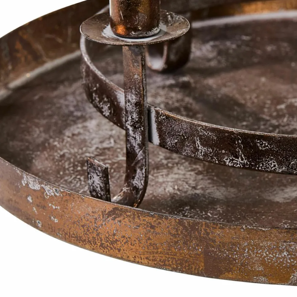 Der Kerzenhalter mit Tablett ist ein wahres Schmuckstück für Ihr Zuhause. Gefertigt aus robustem Eisen und veredelt mit einem trendigen Rost-Finish, bringt er rustikalen Charme in jeden Raum. Die einzigartige Patina verleiht dem Kerzenhalter eine besondere Note, die perfekt zu einem gemütlichen Ambiente passt. Nutzen Sie ihn als stilvollen Adventskranz oder als dekoratives Highlight zu jeder Jahreszeit. Die erhöhte Form bietet Platz für vier Kerzen, die auf dem Tablett sicher und stabil stehen. Ob auf dem Esstisch, der Kommode oder dem Sideboard – dieser Kerzenhalter zieht alle Blicke auf sich und sorgt für eine stimmungsvolle Atmosphäre. Kerzen sind nicht im Lieferumfang enthalten, sodass Sie Ihre eigenen Favoriten einsetzen und so die Dekoration individuell gestalten können.+