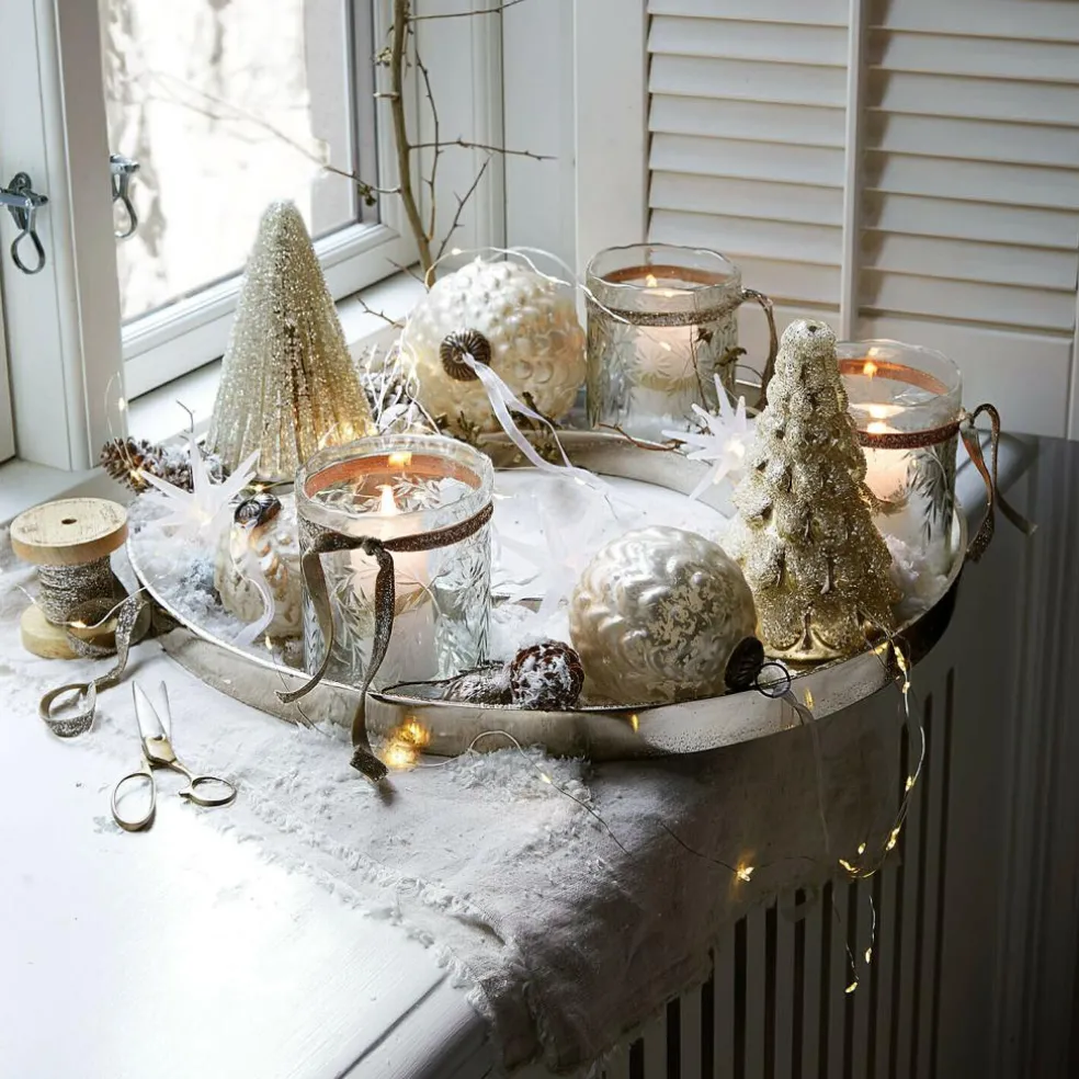 Ein Tischschmuck, der den Ton angibt: Dieses kreisrunde Kerzentablett begeistert mit einer modernen, fast skulpturalen Formgebung – offen in der Mitte, großzügig an der Außenseite. Die leicht strukturierte Oberfläche glänzt in sattem Goldton, der je nach Lichtspiel mal sanft schimmert, mal glamourös funkelt. Ob als Basis für einen Adventskranz, eine moderne Kerzenlandschaft oder als Bühne für saisonale Highlights – die breite Ablagefläche lässt viel Raum für kreative Gestaltungsideen. Der schwere Aluguss verleiht dem Stück eine stabile Präsenz und macht es zu einem verlässlichen Lieblingsstück über viele Jahre hinweg.