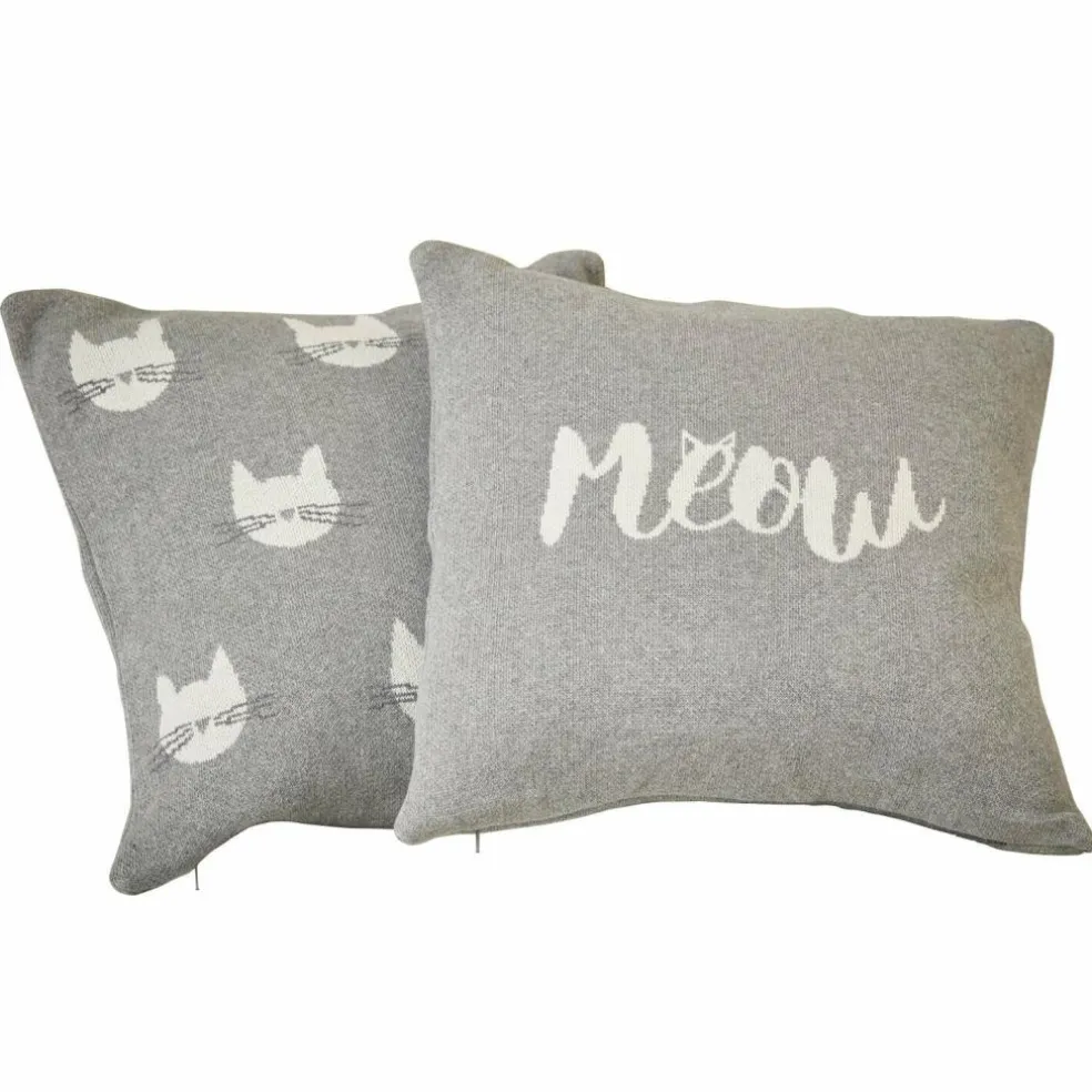 Katzen wissen, was gut ist – besonders, wenn es um ihren Lieblingsplatz geht. Diese beiden gestrickten Kissenhüllen verbinden charmantes Design mit einem kuschelweichen Gefühl und machen aus jeder Ruhezone einen ganz besonderen Ort. Das Set besteht aus zwei liebevoll gestalteten Hüllen: eine ziert der Schriftzug „Meow“, die andere ist mit kleinen, stilisierten Katzenköpfen geschmückt. Die dezente Farbkombination aus warmem Grau und hellem Creme passt perfekt zu natürlichen Materialien und lässt sich wunderbar mit Körbchen, Decken oder Tiermöbeln kombinieren. Ideal für Katzenbetten oder als gemütliches Extra auf dem Sofa – und bei Bedarf schnell in der Maschine gewaschen. Für schnurrige Wohlfühlmomente mit Stil.