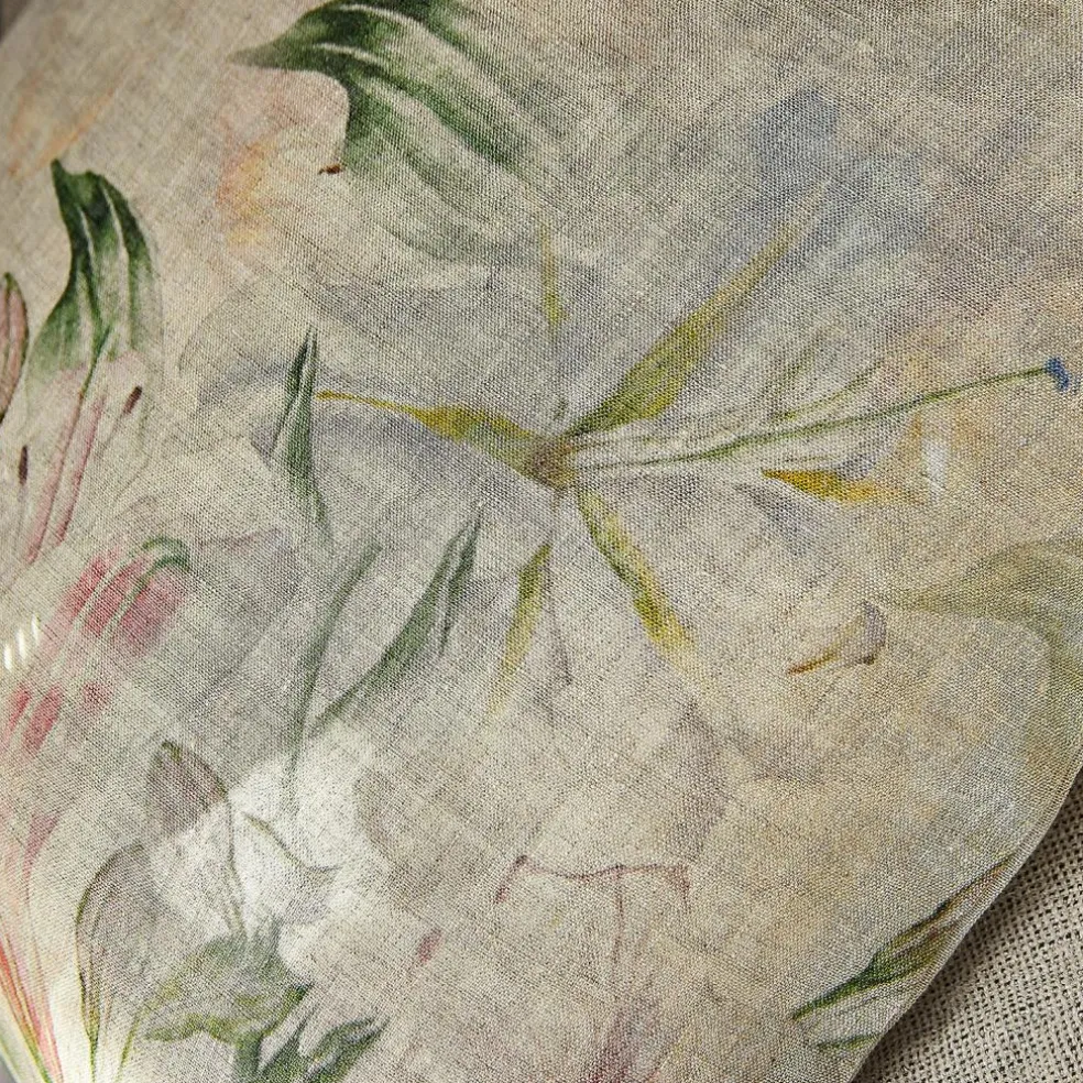Mit dieser Kissenhülle schaffen Sie eine harmonische Verbindung von Naturmaterialien und zartem Design. Das 100% reine Leinen verleiht der Oberfläche eine dezente Struktur, die durch ihre natürliche Haptik begeistert. Das florale Muster in sanften Pastelltönen wirkt wie von Hand gemalt und bringt eine luftig-leichte Note in Ihr Wohn- oder Schlafzimmer. Die dezente Farbgebung fügt sich mühelos in unterschiedliche Einrichtungsstile ein – ob klassisch, modern oder ländlich inspiriert. Kombiniert mit anderen Textilien oder als Einzelstück wird diese Kissenhülle zum gemütlichen Hingucker, der Ihren Wohnraum verschönert und für Wohlfühlatmosphäre sorgt.