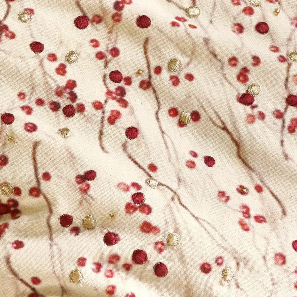 Die goldfarbenen Fäden und kleinen Zierperlen, die mit äußerster Sorgfalt von Hand aufgestickt wurden, verleihen dieser Kissenhülle eine einzigartige, glanzvolle Ausstrahlung. Das Beerenmuster, kunstvoll und detailgetreu bedruckt, bringt die Schönheit der Natur in Ihre Wohnräume. Diese Kissenhülle ist nicht nur ein optisches Highlight, sondern bietet auch unvergleichlichen Komfort. Erleben Sie die perfekte Mischung aus Eleganz und Behaglichkeit in Ihrem Zuhause.
