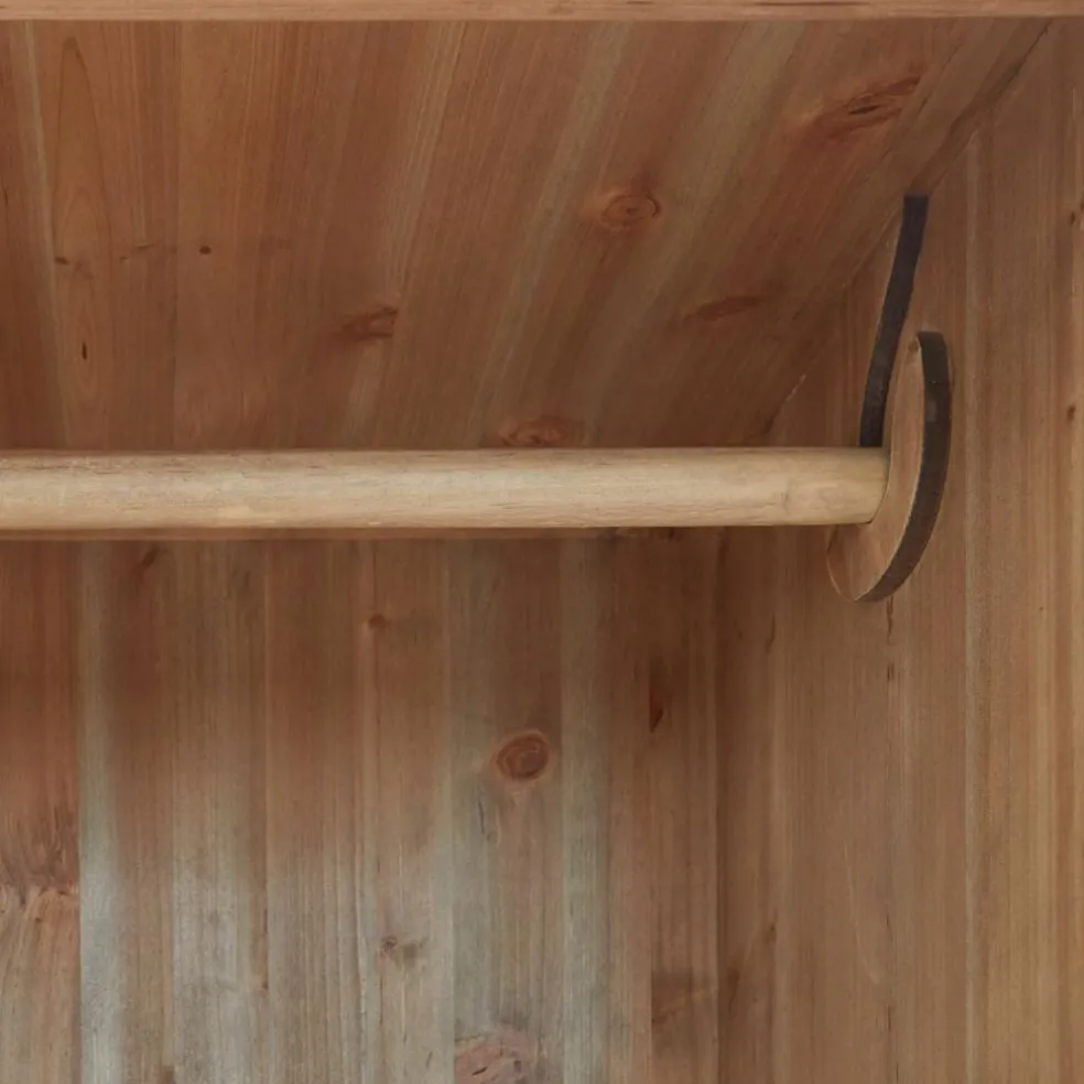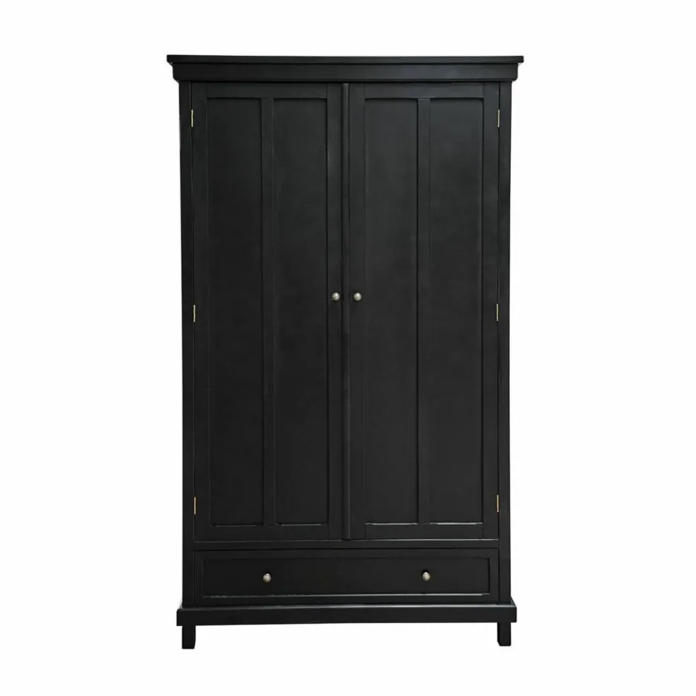 Dieser wunderschöne Kleiderschrank im Landhaus-Stil vereint rustikale Natürlichkeit mit einem modernen, urbanen Touch. Das elegante Schwarz-Finish der Außenseite verleiht dem Schrank eine raffinierte Optik, die perfekt mit dem naturbelassenen Kiefernholz im Inneren harmoniert. Die fest eingebauten Regalböden sorgen für Stabilität und bieten zusammen mit der Kleiderstange viel Platz für Kleidung, Accessoires und mehr. Ein echtes Highlight in jedem Raum, das durch seine durchdachte Funktionalität und stilvolle Optik überzeugt – ideal für Liebhaber des modernen Landhausstils.
