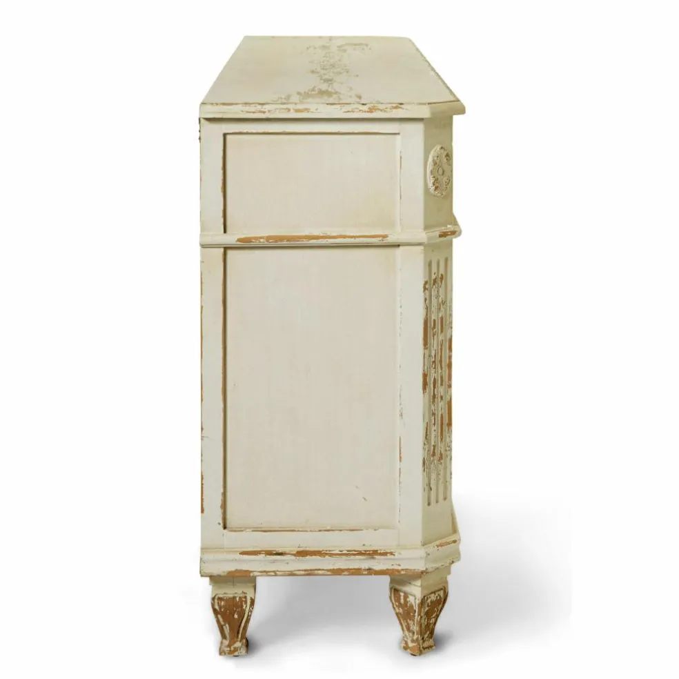 Wie ein geliebtes Erbstück aus einem Landhaus wirkt diese massive Kommode aus echtem Tannenholz. Die aufgetragenen Gebrauchsspuren verleihen dem Möbelstück ein bezauberndes historisches Flair. So als hätten die geräumigen Schubladen schon die Kleidung vieler Generationen aufbewahrt. In Zeiten, in denen das Waschen und Säubern der Wäsche noch viel Mühe machte. Man mag sich vorstellen, wie die Kleider zunächst im Kessel ausgekocht wurden und die gesamte Waschküche dabei voller Dampf und Hitze stand. Von Sonne und Wind getrocknet, warteten die wohlriechenden Wäschestücke dann in der wunderschönen Kommode geduldig auf ihren nächsten Einsatz. Dieses einzigartige Schmuckstück bringt Behaglichkeit und den Charme längst vergangener Zeiten in Ihre Wohlfühlräume!
