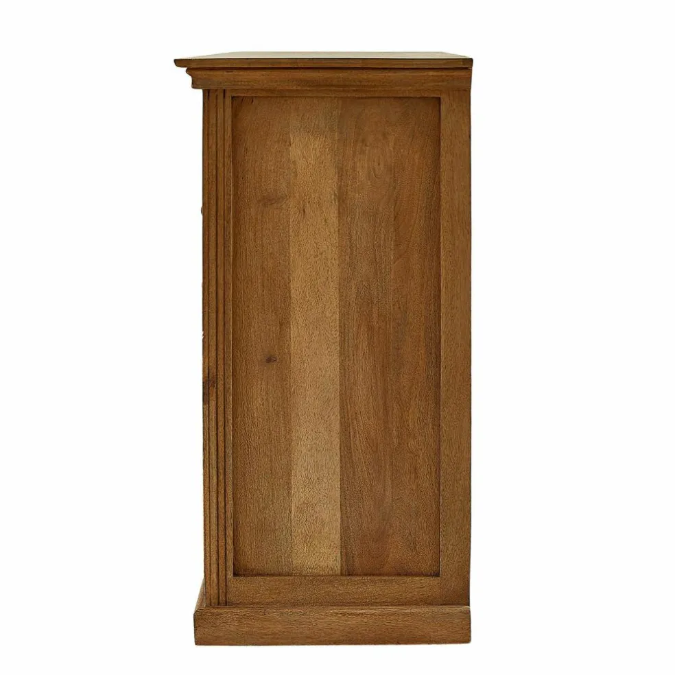 Verleihen Sie Ihrem Zuhause einen Hauch von rustikalem Charme mit dieser beeindruckenden Kommode aus massivem Mangoholz. Das dezente antikgraue Washed-Finish und die sichtbaren Holzmaserungen machen jedes Stück zu einem einzigartigen Kunstwerk der Natur. Die sorgfältig gearbeiteten Schubladen bieten reichlich Stauraum für Ihre Habseligkeiten, während die oberen beiden Auszüge eine praktische Besonderheit darstellen: Sie können als zusätzliche Ablagefläche genutzt werden oder bieten Platz für ein bequemes Schreibpult. Dieses vielseitige Möbelstück ist nicht nur funktional, sondern auch ein stilvolles Statement in jedem Raum. Ob im Wohnzimmer zur Aufbewahrung von Büchern und Dekorationen, im Schlafzimmer für Kleidung und Accessoires oder im Arbeitszimmer als stilvolle Organisationseinheit – diese Kommode fügt sich harmonisch in jede Einrichtung ein und bereichert Ihr Zuhause mit natürlicher Schönheit und praktischer Raffinesse.