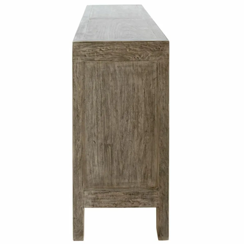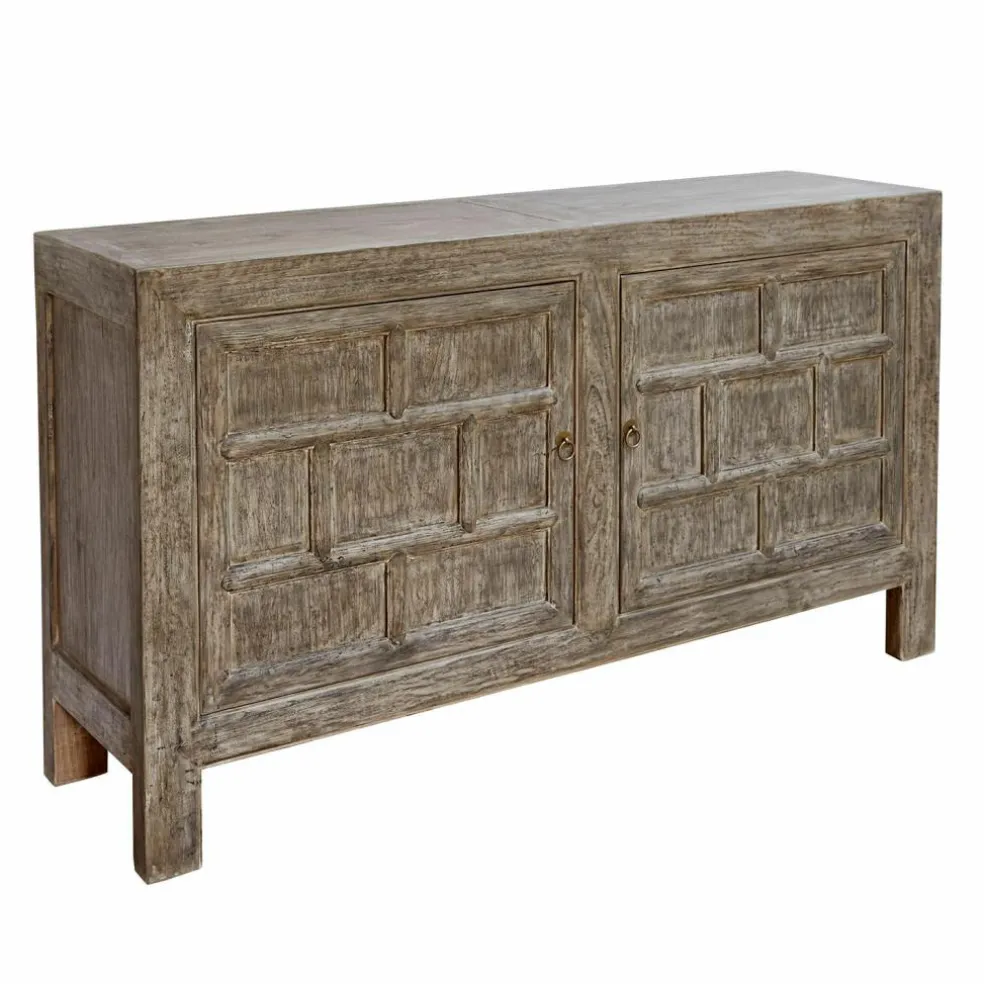 Rustikal und doch zeitlos – diese Kommode verbindet die charmante Ausstrahlung von massivem Kiefernholz mit einem einzigartigen, schwarz gekalkten Finish. Das wiederaufbereitete Holz erzählt von Natürlichkeit und Beständigkeit, während die geometrischen Rahmen der Türen eine klare und ästhetische Linie schaffen. Hinter den zwei geräumigen Türen verbirgt sich großzügiger Stauraum für Ordnung im Wohn- oder Essbereich. Perfekt, um alltägliche Dinge stilvoll zu verstauen und gleichzeitig ein Design-Statement zu setzen. Die subtilen, natürlichen Holzmaserungen verleihen jedem Stück einen individuellen Charakter und machen diese Kommode zu einem Unikat.