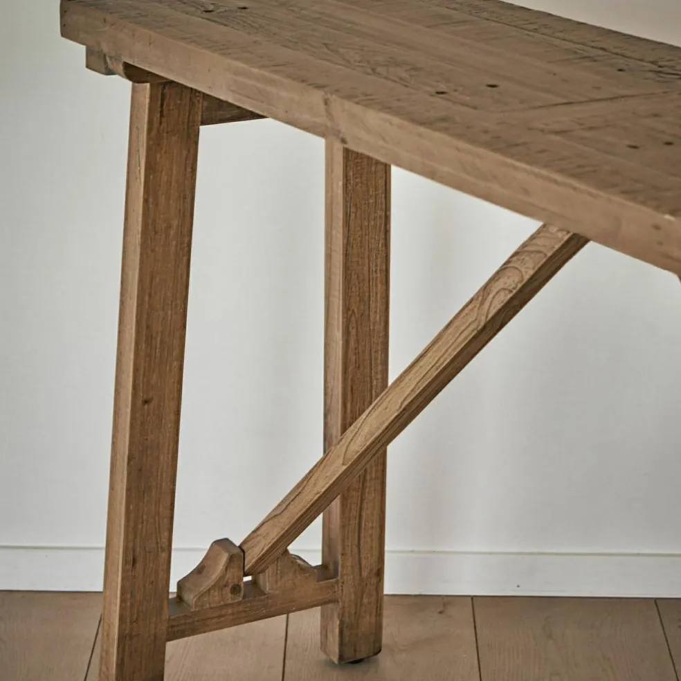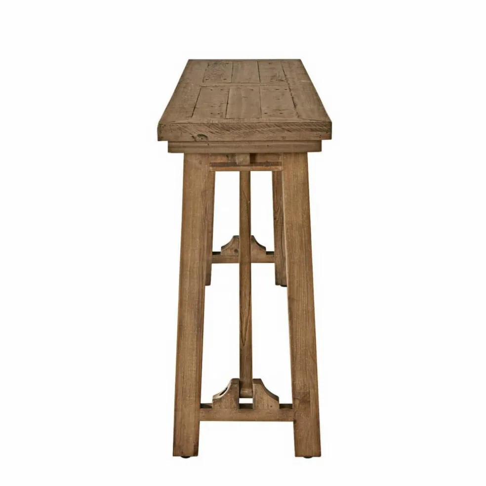 Erleben Sie ein echtes Schmuckstück im natürlichen Landhaus-Stil. Diese schöne Konsole besteht aus nachhaltig wiederaufbereitetem Kiefernholz, was auch der Umwelt gut tut. Sie ist von Hand bemalt und mit einer hübschen Maserung und Jahresringen versehen – sozusagen ein Schmuckstück von Natur aus. Die Querstreben geben ihr eine raffinierte Optik wie auch noch mehr Halt. Auf der Ablage lassen sich tolle Dekorationen zaubern, vielleicht mit Blumen, Kerzen und Büchern, und auch stilvolle Lampen könnten hier ein Plätzchen finden. Das wertvolle Modell ist in jedem Raum eine Zierde und bringt eine klassische und naturnahe Anmutung mit sich.