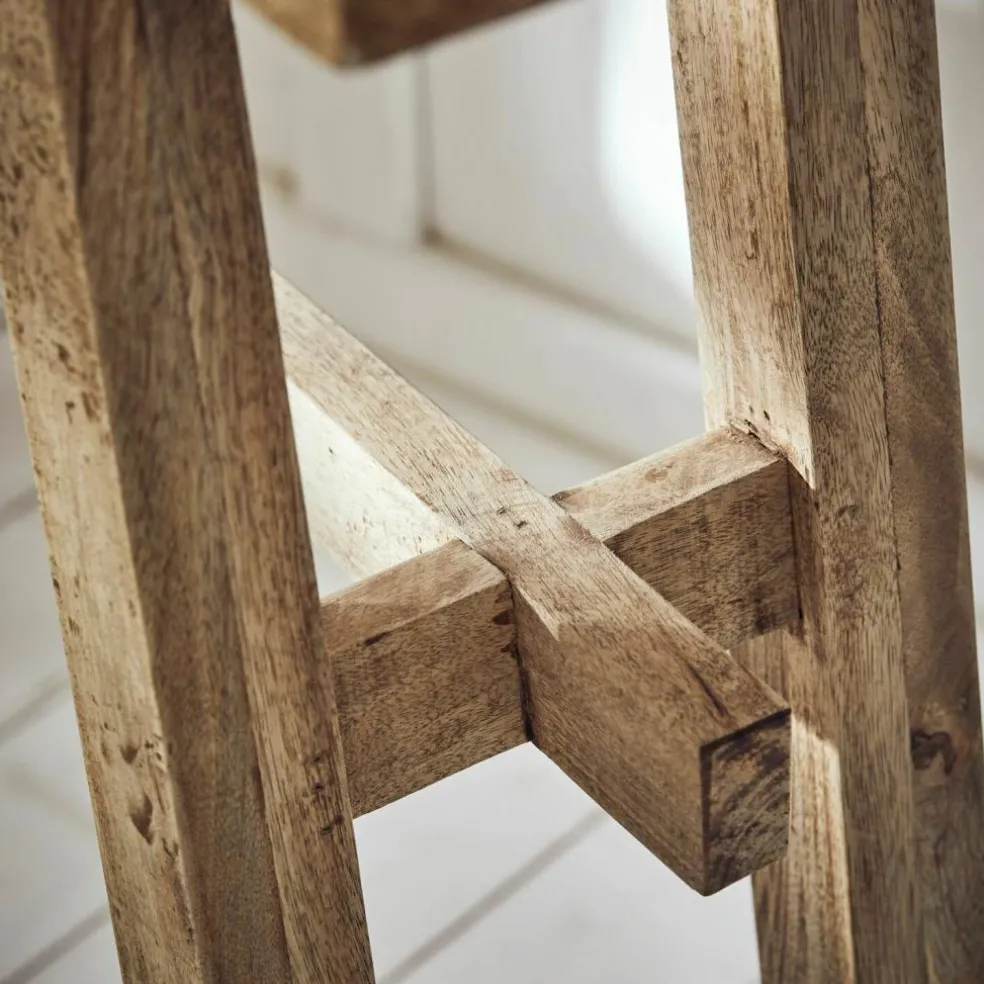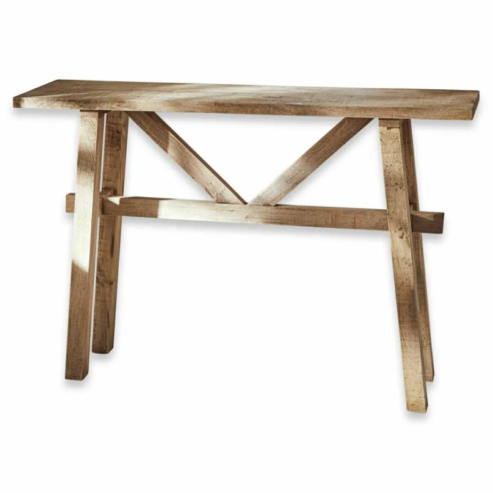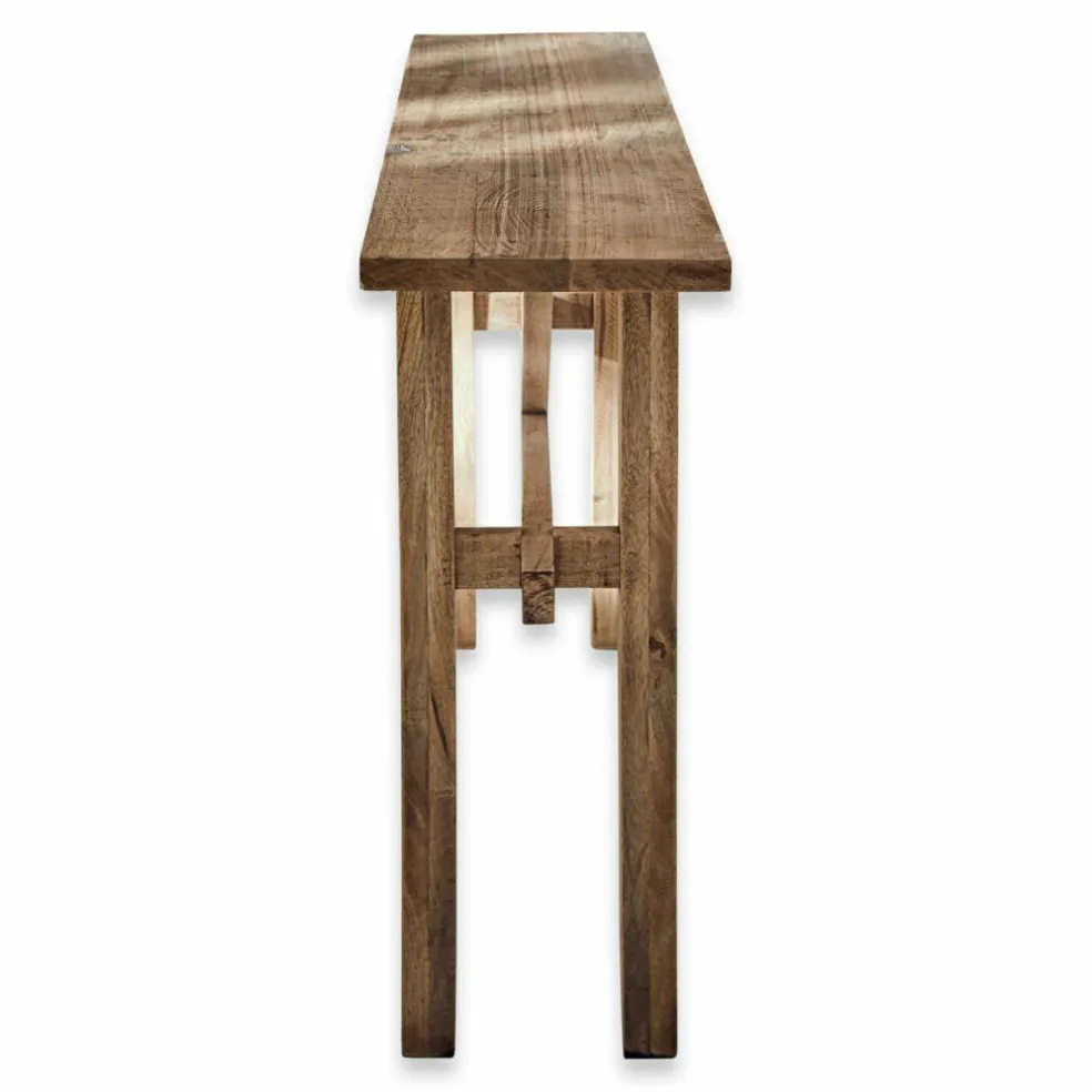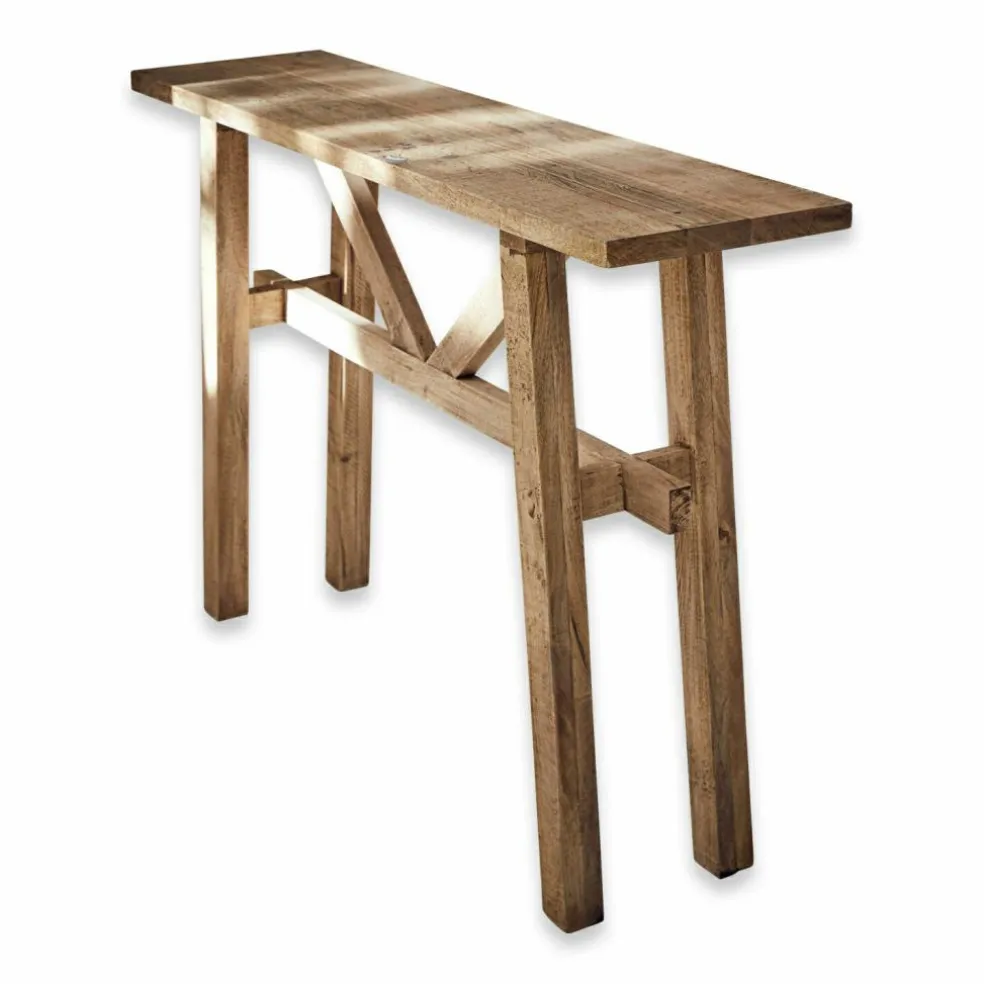 Sie sind nur so schmal wie ein Regal, aber so hoch wie ein Tisch – kein Wunder, dass sich Konsolen über die Jahrhunderte einen festen Platz in den Wohn-Interieurs erobert haben. Die ersten Konsolentische, wie diese Möbel im 17. Jahrhundert noch hießen, hatten übrigens tatsächlich nur zwei Beine und mussten an der Wand befestigt werden. Über diese Frühform ist unsere Konsole aber selbstverständlich herausgewachsen, sodass sie noch flexibler ist, was ihre Platzierung und ihre Einsatzmöglichkeiten betrifft. Und die sind schier unendlich. So kann die Konsole in einem beengten Eingangsbereich als platzsparende Ablage für Portemonnaie und Handy dienen, mit einem passenden Spiegel oder einer Wandgarderobe darüber. Sie kann aber auch im Wohn- oder Essbereich die stilvolle Basis für Ihre individuellen Deko-Arrangements bilden, mit der Sie die Jahreszeiten stimmungsvoll inszenieren. Oder suchen Sie eine kleine, aber originelle Lösung für die Mini-Hausbar, einen schlanken Schminktisch fürs Schlafzimmer oder vielleicht eine schlanke Anrichte für die Küche? In diesen – und noch vielen anderen Situationen – wird sich die Konsole von ihrer besten Seite zeigen. Sie besteht aus massivem Mangoholz, das durch das authentische Antik-Finish noch besser zur rustikalen Machart der Konsole passt.