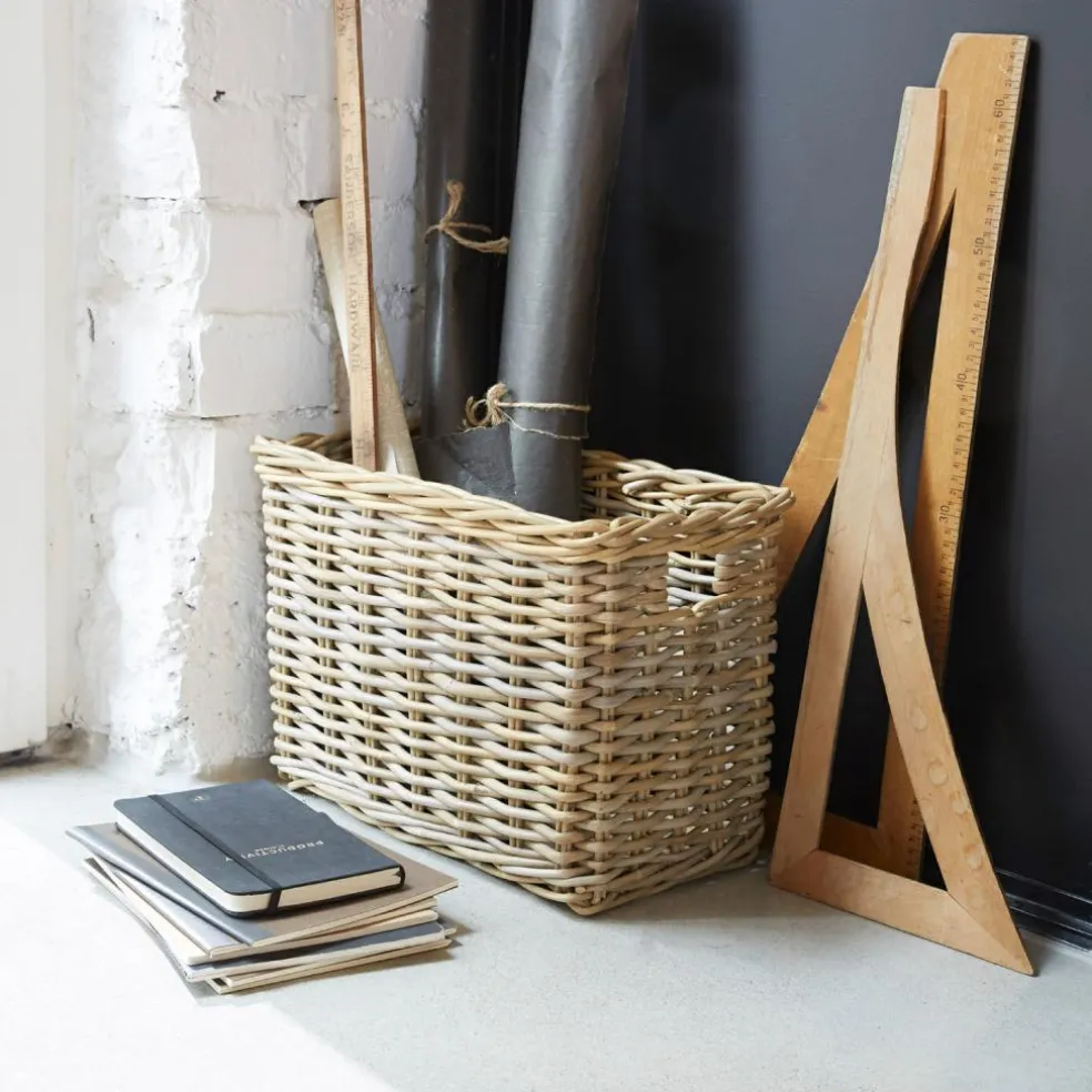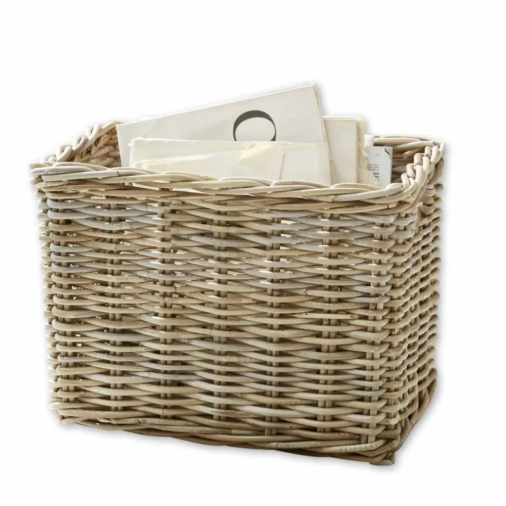 Aus dem naturbetonten Ambiente des klassischen Landhaus-Stils sind Körbe aus Naturmaterialien nicht mehr wegzudenken. Ganz wie früher, als solche Körbe zur Aufbewahrung von vielerlei Dingen dienten, gerade auf dem Land. Rattan, die Naturfasern der Calamus-Palme, hat die europäische Bühne erst im 18. Jahrhundert betreten, ist aber schnell zu Nr. 1 avanciert, denn das Material lässt sich gut flechten, ist angenehm leicht und doch erstaunlich stabil und langlebig. Da auch dieser Korb ganz im traditionellen Stil von Hand gefertigt wurde, haben Sie mit ihm ein Wohn-Accessoire entdeckt, das Sie viele Jahre, wenn nicht Jahrzehnte begleiten kann. Und das Beste dabei: Mit seinem Natur-Look fügt sich der Korb in nahezu jedes Wohnambiente ein. Am schönsten aber harmoniert er mit Möbeln im Landhaus-Stil, wo er sich neben edlen Hölzern und Heimtextilien sofort zu Hause fühlt. Und dann wird er nicht müde werden, Ihnen zu Diensten zu sein. Sie suchen einen Korb, um im Flur die Hausschuhe darin aufzuheben? Bitte sehr, er steht bereit. Oder suchen Sie einen Korb, den Sie ins Küchenregal schieben können, um darin verschiedene Küchenutensilien aufzubewahren? Auch die Holzeisenbahn der Kinder, Ihr Strickzeug, die Zeitungen und, und, und sind in diesem bezaubernden Korb perfekt aufgeräumt.