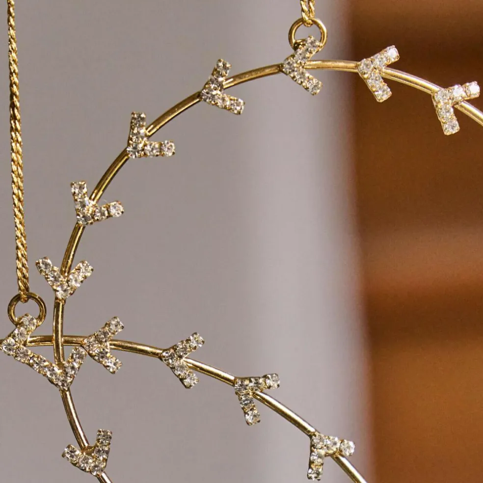 Zart wie ein Hauch von Winterglanz präsentiert sich dieses edle Kranz-Set mit funkelnden Glassteinen, eingefasst in feines, goldfarbenes Metall. Die filigranen Zweige formen sich zu einem eleganten Kreis, der wie eine stilisierte Krone wirkt – schimmernd, leicht und mit einer Prise Glamour. Jeder einzelne Kristall fängt das Licht auf seine eigene Weise ein und bringt eine festliche Stimmung in Ihr Zuhause. Ob als festliche Wanddeko, feiner Blickfang im Fenster oder Teil eines stilvollen Tischarrangements – diese Kränze lassen sich vielseitig einsetzen und sorgen immer für einen Hauch Magie. Das Organza-Aufhängeband ergänzt den feinen Look und macht das Arrangement spielend einfach.
