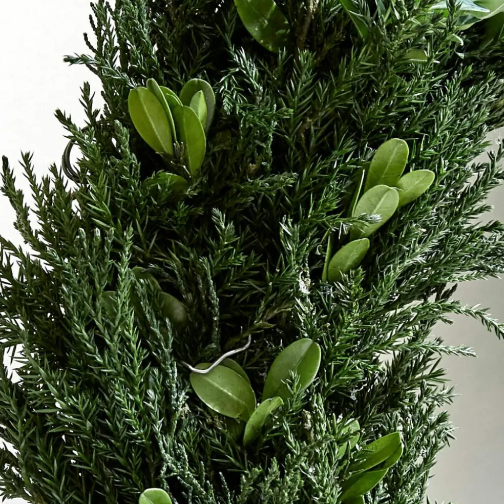 Hiermit kommt die Schönheit der Natur zu Ihnen nach Hause. Der wertvolle Kranz besteht aus konservierter, echter Zypresse und ebenso konserviertem Buchsbaum. Sogar der feine, natürliche Duft ist wahrnehmbar – ein zauberhaftes Detail, welches zum Wohlbefinden beiträgt. Das schöne Stück lässt sich hinlegen oder an einem dekorativen Band aufhängen, etwa an der Wand, innen an der Tür oder im Fenster platziert. Dank der Konservierung können Sie sich lange Zeit an diesem eleganten Naturdesign freuen, ob zu Weihnachten oder auch im Sommer. Der hübsche Kranz adelt jedes Interieur und macht jeden Raum gleich noch gemütlicher und ansprechender. Ein Aufhängeband ist zwar nicht im Lieferumfang enthalten, aber so können Sie selbst, ja nach Ambiente, selbst über die Befestigung entscheiden. Vielleicht passt zur Natürlichkeit ein Juteband oder etwas Bast.