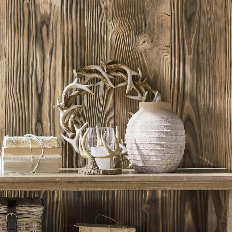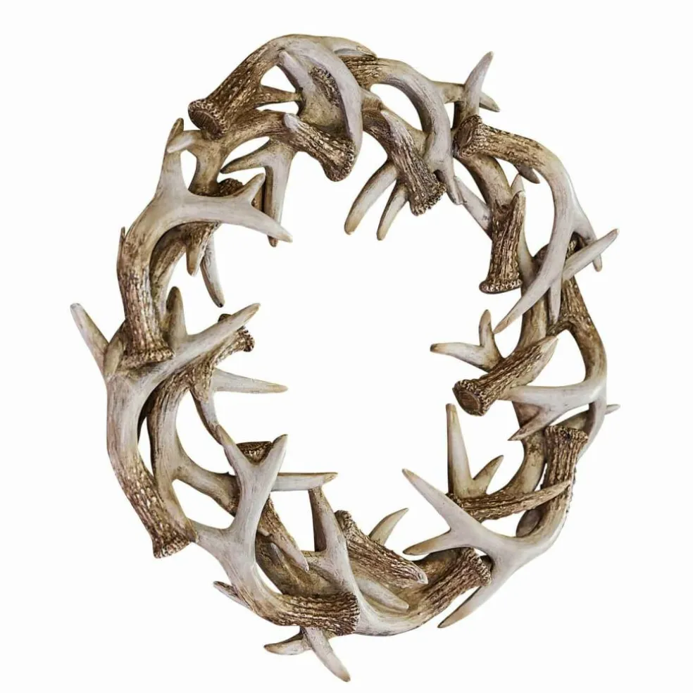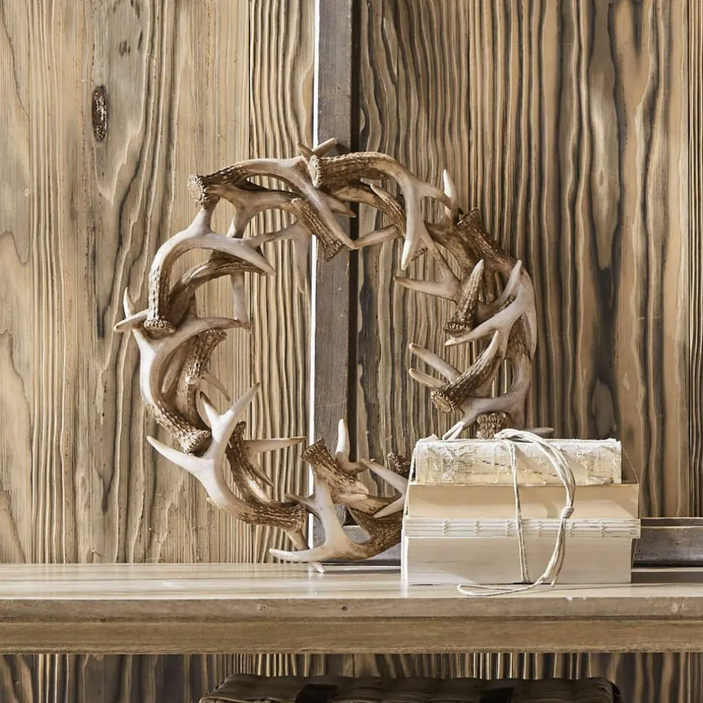 Dieser Geweih-Kranz ist ein Symbol für rustikale Eleganz. Aus Polyresin gefertigt und sorgfältig handbemalt, strahlt er eine authentische Wald-Ästhetik aus. Die kunstvoll gestalteten Geweih-Elemente in natürlicher Farbe fügen sich zu einem beeindruckenden Kranz, der sowohl als Wand- oder Türdekoration eine imposante Figur macht. Ob zur Jagdsaison, in der Winterzeit oder als stimmungsvolle Deko im Landhausstil, dieser Kranz wird garantiert bewundernde Blicke auf sich ziehen und ein Gesprächsstoff sein. Eine wundervolle Mischung aus natürlicher Wildheit und handwerklicher Präzision.