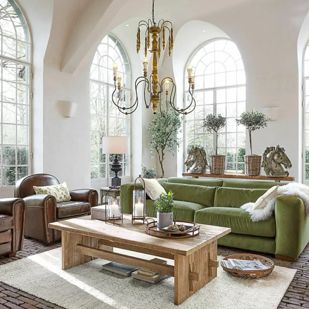Er erinnert an längst vergangene Zeiten, als Leuchter wie dieser in den Salons und Speisezimmern nobler Landhäuser hingen und der warme Schein von echten Kerzen einladende Gemütlichkeit verbreitete. Dieser Leuchter wird zwar nicht mehr mit Wachskerzen bestückt, doch seine Raumwirkung ist ähnlich beeindruckend. Vor allem, weil die zierlich geschwungenen Arme aus Schmiedeeisen in aufwendig gearbeiteten Fassungen münden, die klassischen Kerzenhaltern nachempfunden sind und den antiken Charakter des Leuchters unterstreichen. Das imposante Mittelteil wurde von Hand aus edlem Mangoholz gedrechselt und sein warmer Braunton harmoniert wunderschön mit dem Antik-Finish der eisernen Arme. Zusätzlich befinden sich am oberen Ende fein gedrechelste Verzierungen aus Holz, die wie Tropfen herabhängen und noch einmal einen zusätzlichen Wow-Effekt mitbringen. Ein Leuchter, der sich in jedes rustikale Landhaus-Ambiente einfügt – als stilvolle Beleuchtung über dem Esstisch, im großzügigen Eingangsbereich oder im Wohnraum. Tipp: LED-Birnen in Kerzenform runden den nostalgischen Look perfekt ab.