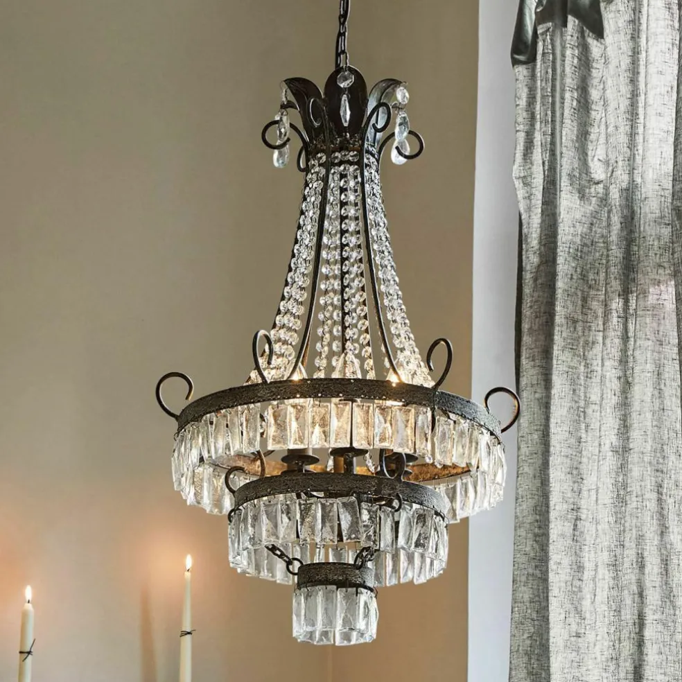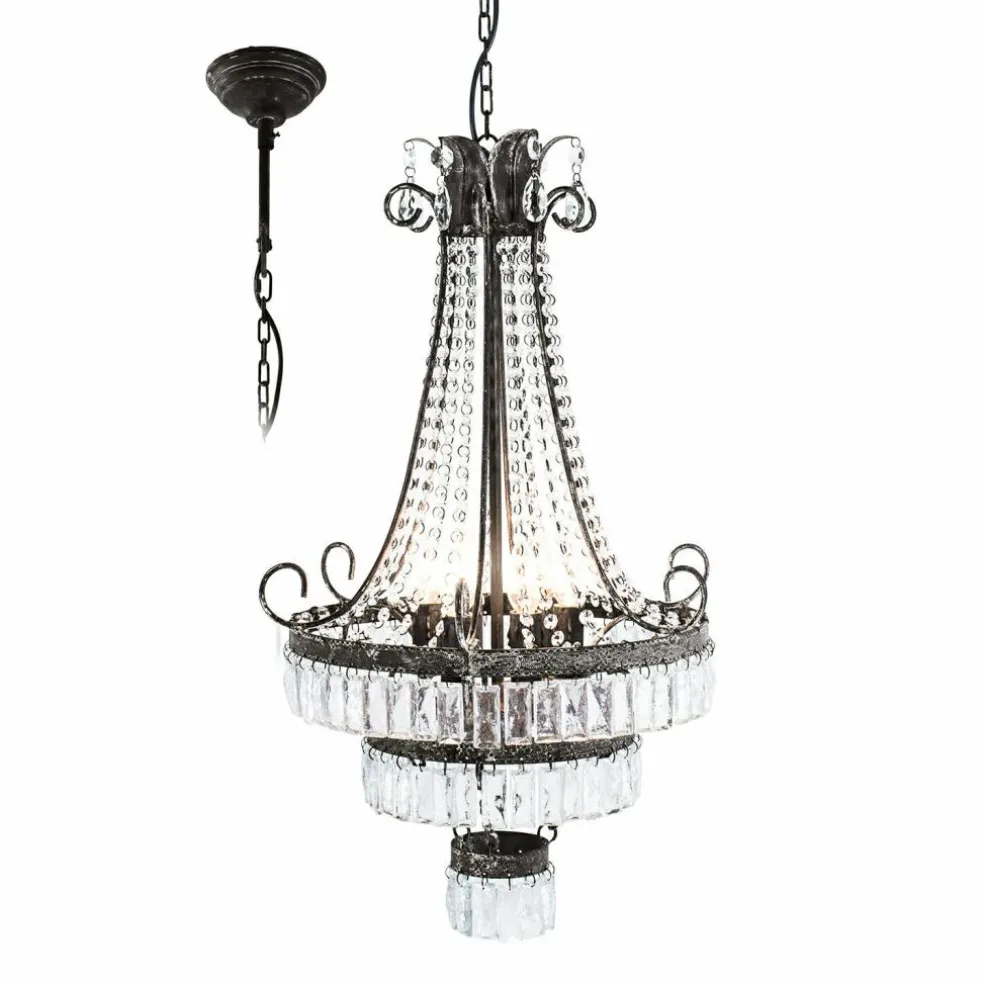 Erleben Sie die Faszination eines wahren Schmuckstücks in Ihrem Zuhause! Dieser elegante Kronleuchter setzt Maßstäbe in puncto Stil und Klasse: Das elegant geschwungene Eisengestell in Antikoptik präsentiert sich als meisterliche Handwerkskunst. Es befinden sich reichlich verzierte Muster auf dem Eisen, die durch den Antik-Look noch etwas deutlicher zum Vorschein kommen. Am Eisengestell befestigt sind zahlreiche Glasprismen. Jeder einzelne Kristall wurde in traditioneller Handarbeit gefertigt, um diesem Kronleuchter seine einzigartige Brillanz zu verleihen. Die unzähligen Glaskristalle fangen das Licht ein und verzaubern Ihren Raum mit beindruckenden Glitzereffekten. So schafft dieser Eye-Catcher ein luxuriöses Ambiente und wird sowohl Sie als auch Ihre Gäste begeistern!