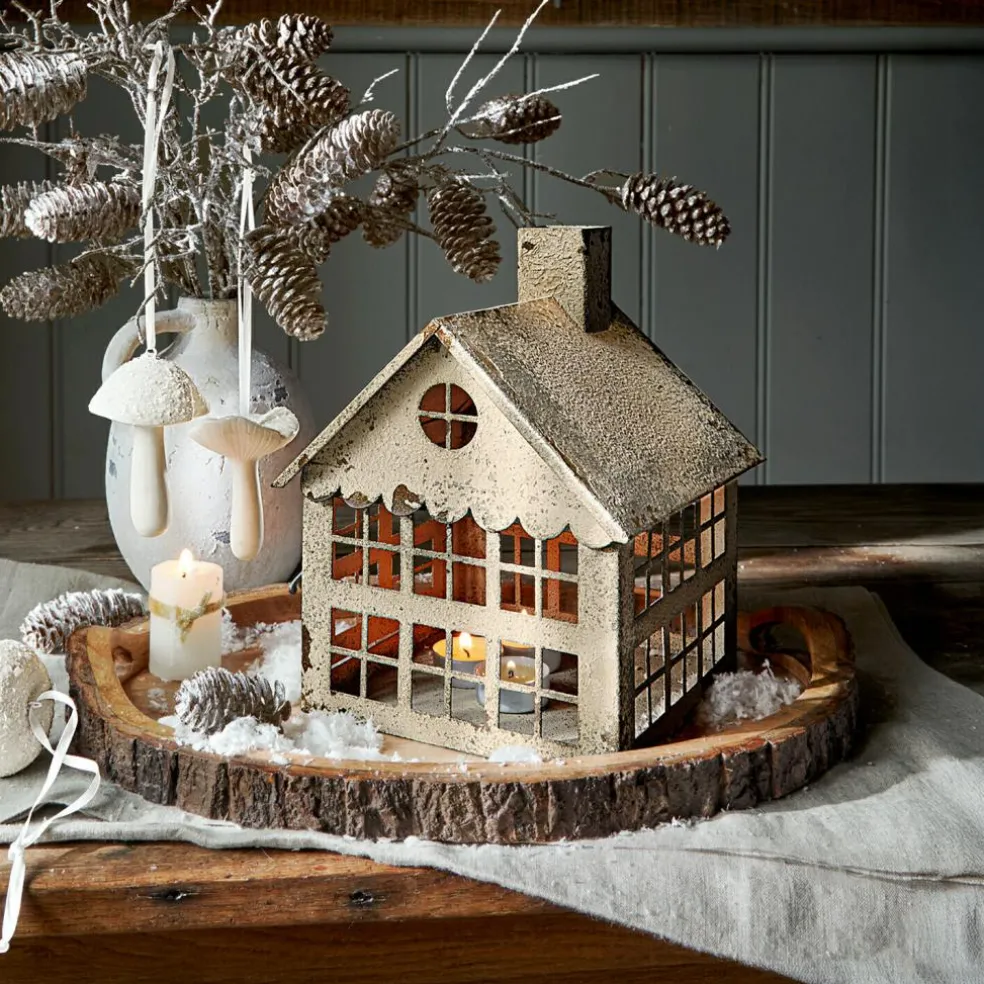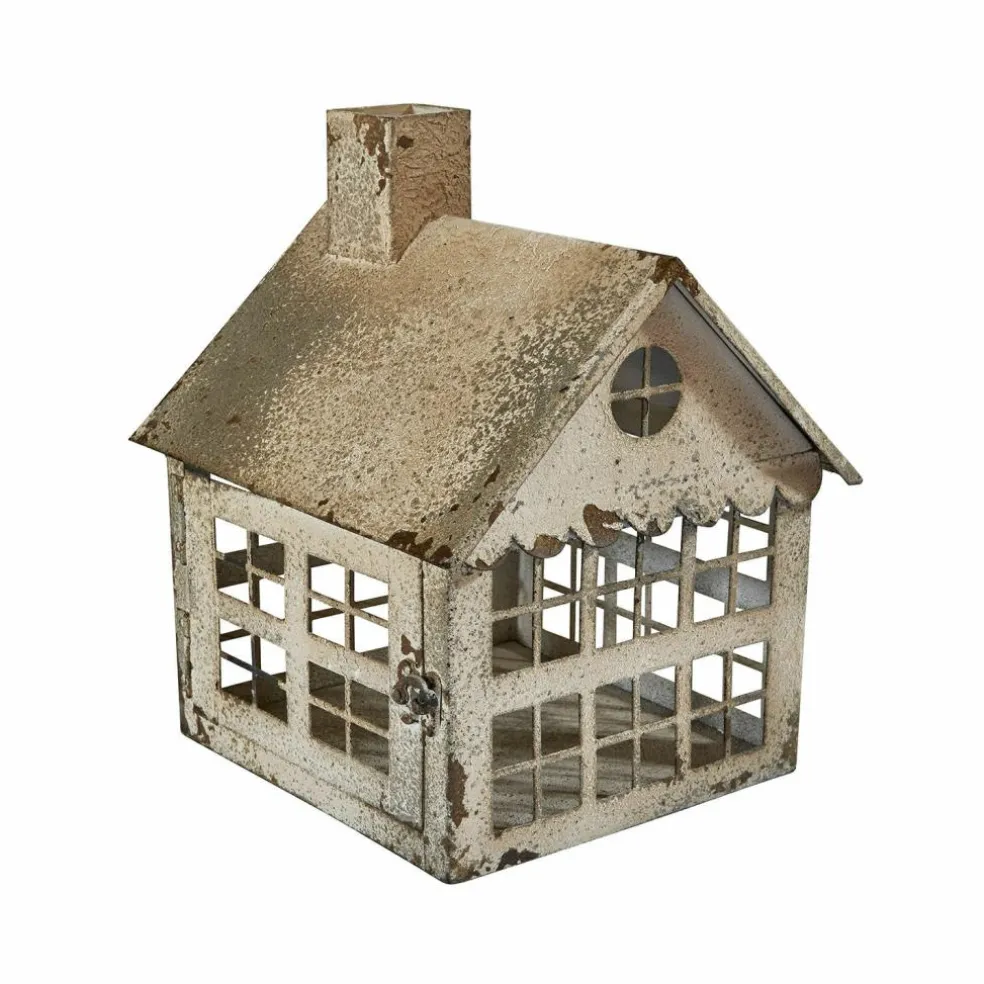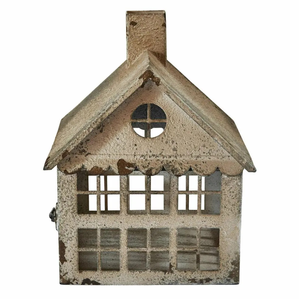 Wie aus einer anderen Zeit wirkt dieses kleine Eisenhaus, dessen Patina von frostigen Winternächten und warmem Kerzenschein erzählt. Die rustikale Oberfläche, mit ihrem gewollt gealterten Finish, unterstreicht den nostalgischen Charakter und erinnert an verschneite Abende im Kerzenlicht. Sobald ein Teelicht im Inneren entzündet wird, erwachen die ausgestanzten Fenster zum Leben: Zarte Lichtstrahlen tanzen über Wände und Möbel, tauchen den Raum in ein wohlig warmes Ambiente. Ob einzeln platziert oder als Teil eines winterlichen Ensembles – dieses Lichterhäuschen erzählt seine ganz eigene Geschichte.