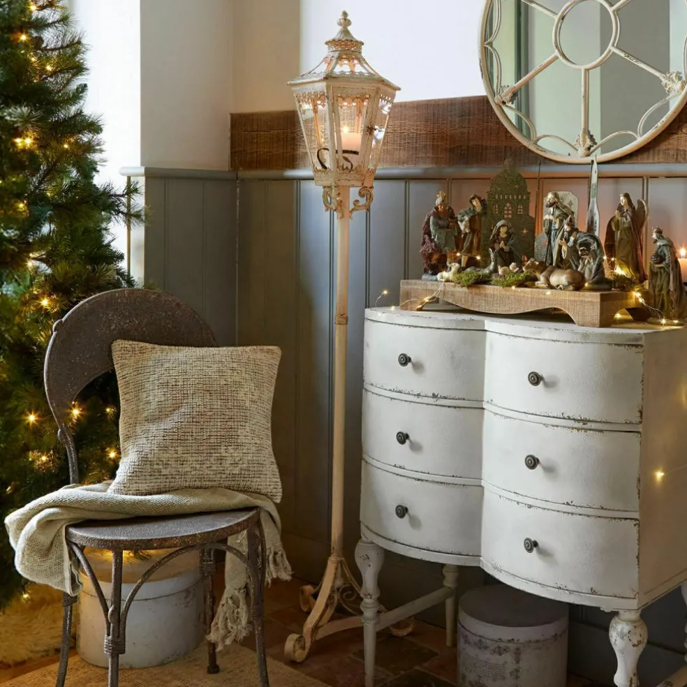Wie aus einem alten Stadthof entführt, verleiht diese Laterne jeder Umgebung einen Hauch historischer Anmut. Der hohe, elegante Standfuß sorgt nicht nur für Stabilität, sondern hebt das Lichtspiel auf Augenhöhe – ideal, um kleine Szenen im Raum oder auf der Veranda in stimmungsvolles Licht zu tauchen. Der Rahmen aus Eisen zeigt eine sanft patinierte Oberfläche mit nostalgischem Flair, während die klaren Glaseinsätze das Kerzenlicht lebendig flackern lassen. Die Form erinnert an klassische Hoflaternen vergangener Jahrhunderte – zurückhaltend verziert, aber mit wirkungsvoller Präsenz. Ob im Eingangsbereich, neben einer Bank im Garten oder in einer überdachten Laube – sie schenkt Atmosphäre und Geschichte in einem.