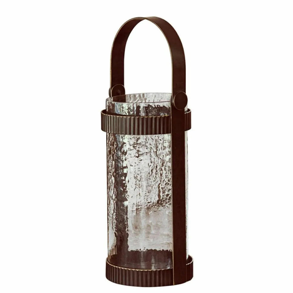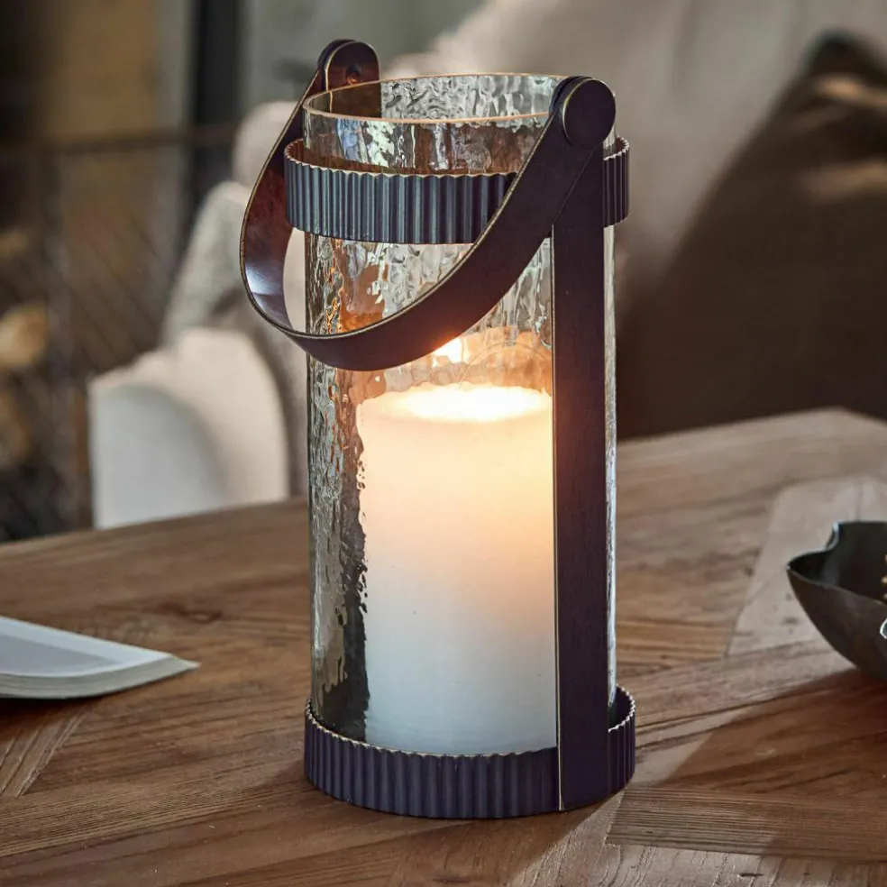 Diese kunstvolle Laterne aus Eisen und Glas ist ein wahres Schmuckstück für jede Einrichtung. Ihr Glaseinsatz mit gehämmerter Oberfläche lässt Kerzenlicht auf eine besonders ansprechende Weise funkeln und sorgt für ein faszinierendes Lichtspiel. Der Eisenrahmen verleiht ihr eine robuste Struktur, die dennoch elegant und raffiniert wirkt. Mit ihrem geschwungenen Griff lässt sich die Laterne einfach transportieren oder an Ihrem Lieblingsplatz aufhängen. Ob für laue Sommerabende im Garten, als stimmungsvolle Beleuchtung im Wohnzimmer oder als rustikale Dekoration – diese Laterne bringt in jedem Fall Stil und Wärme in Ihr Leben.